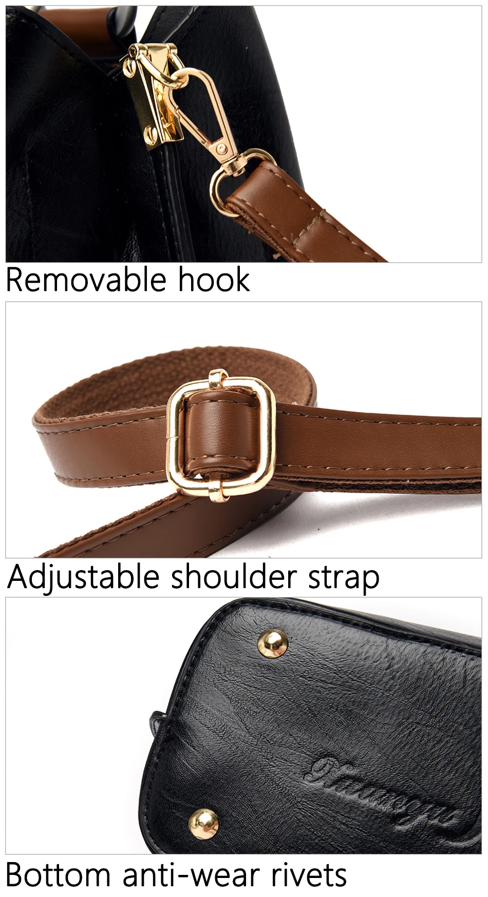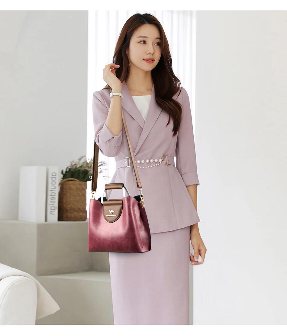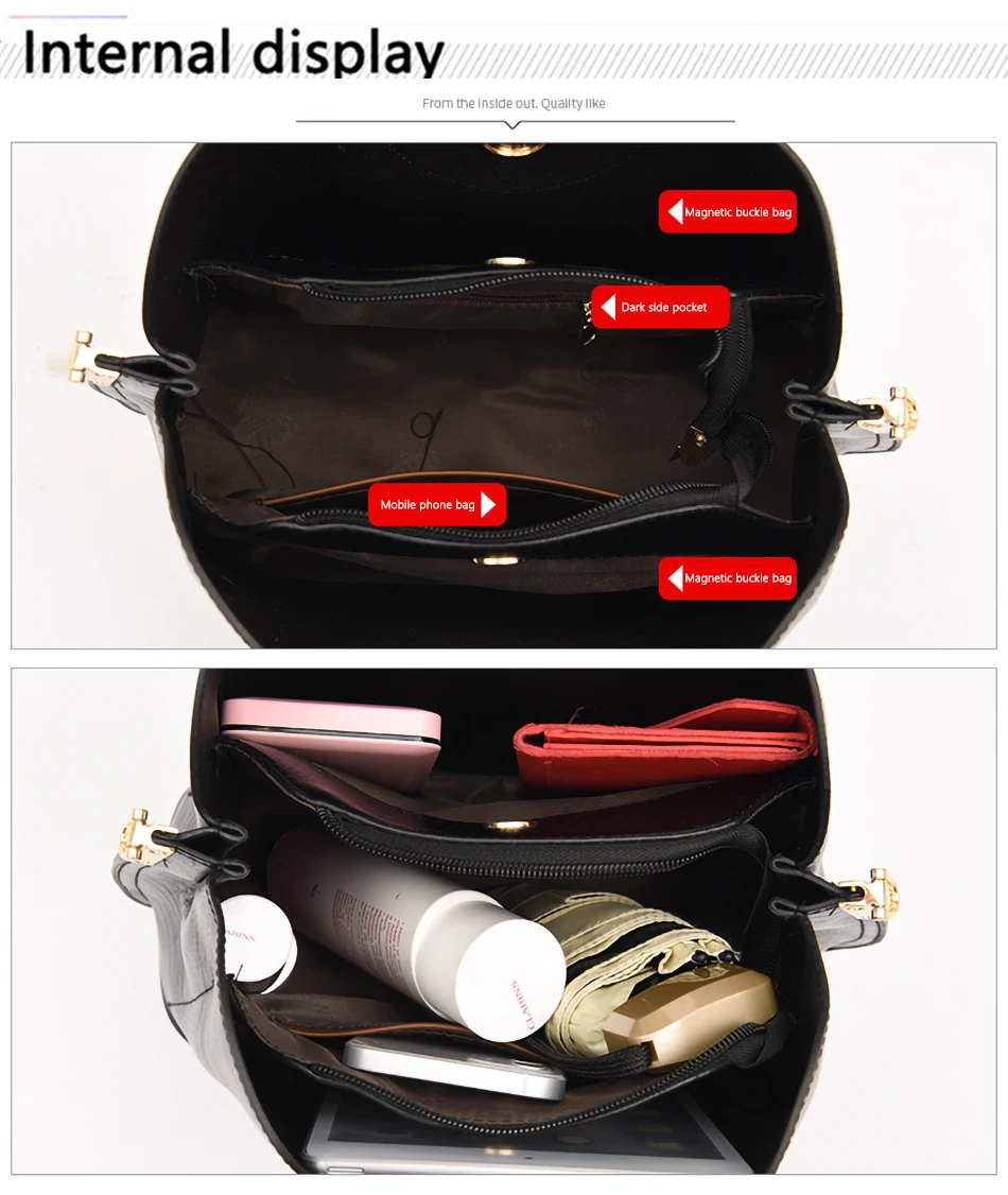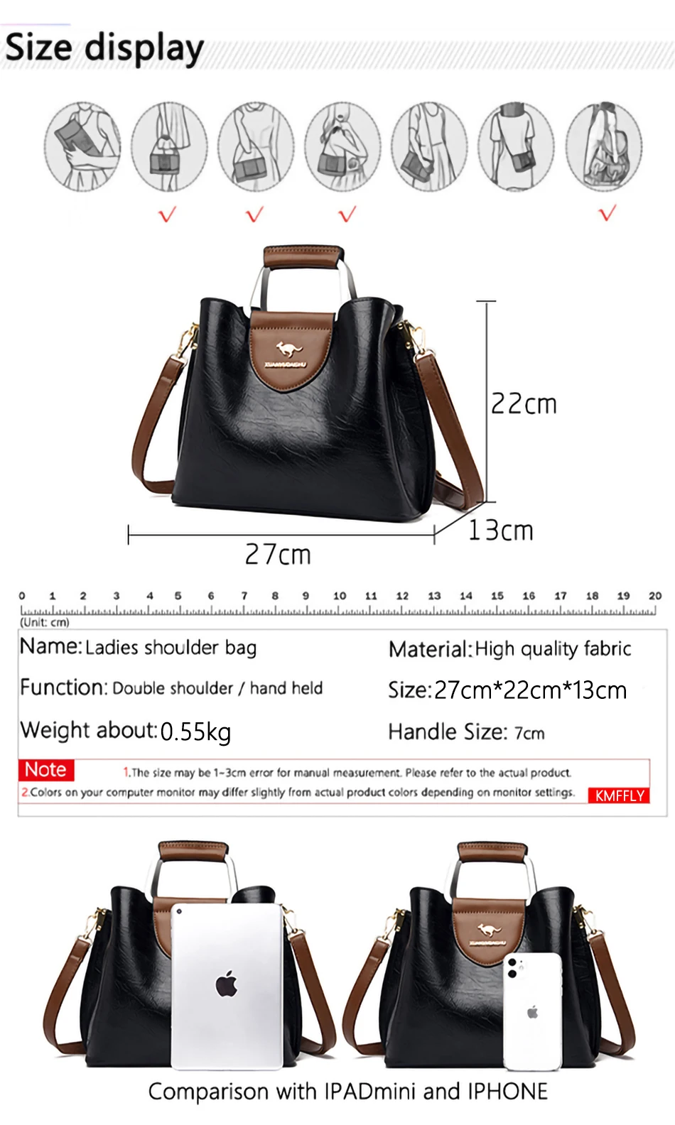 Large Capacity High Quality PU Leather Lady Messenger Bag Retro Designer Metal Handle Shoulder Bag Fashion Contrast Color Design