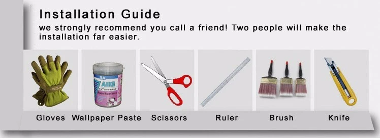 Prepare the necessary tools: Glue,Brush,Roller,Scraper,Ruler,Knife,towel/Sponge