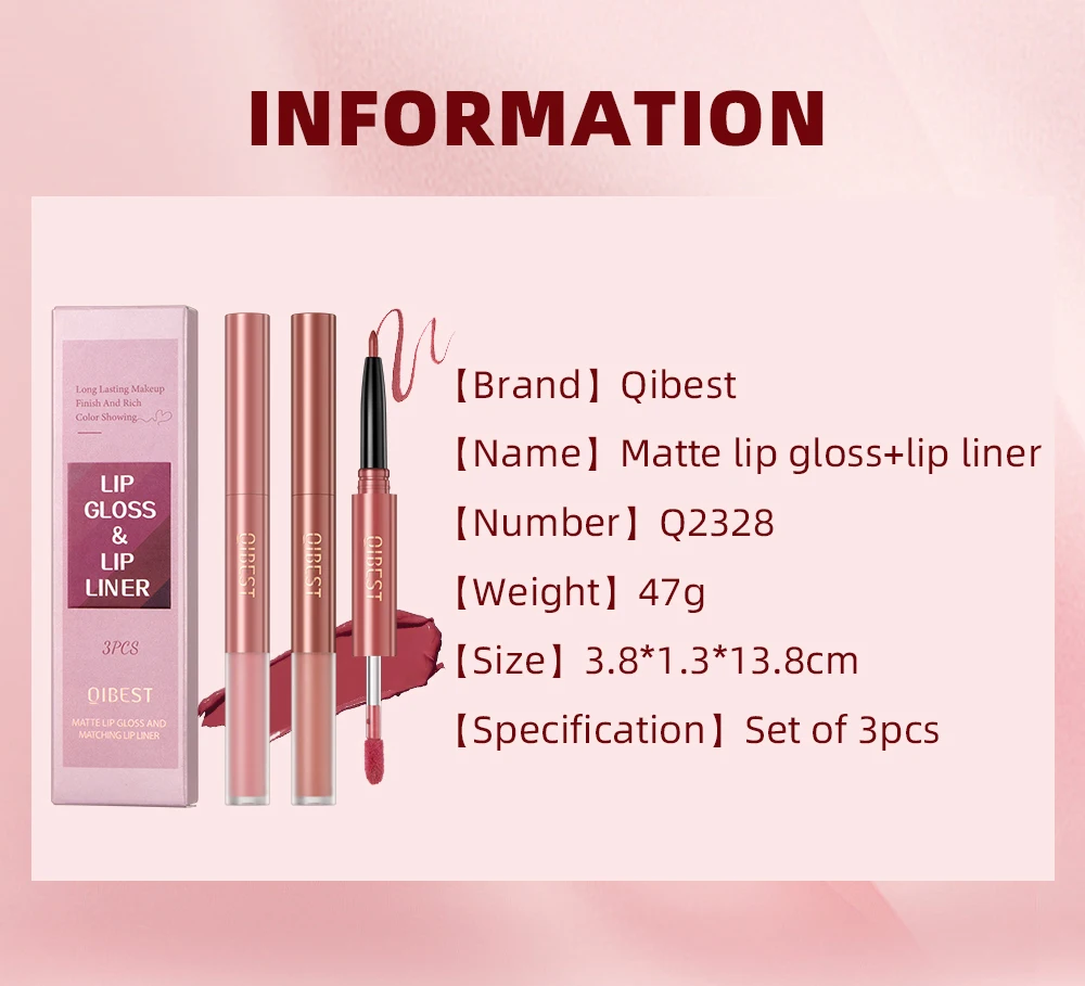 3pcs/set Liquid Lipstick Velvet Matte Lipgloss Liner Moisturizing Lip Stick Waterproof Lasting Non-stick Lip gloss Woman Makeup