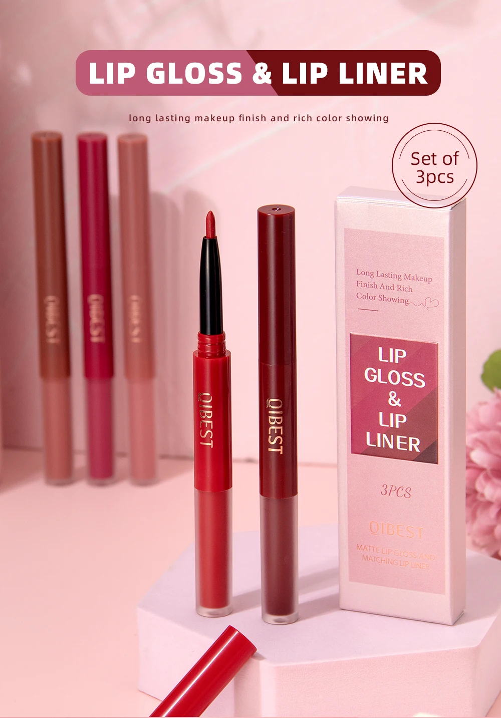 1x Double Head Lipgloss Lipliner Set(3 Colors Sets)
