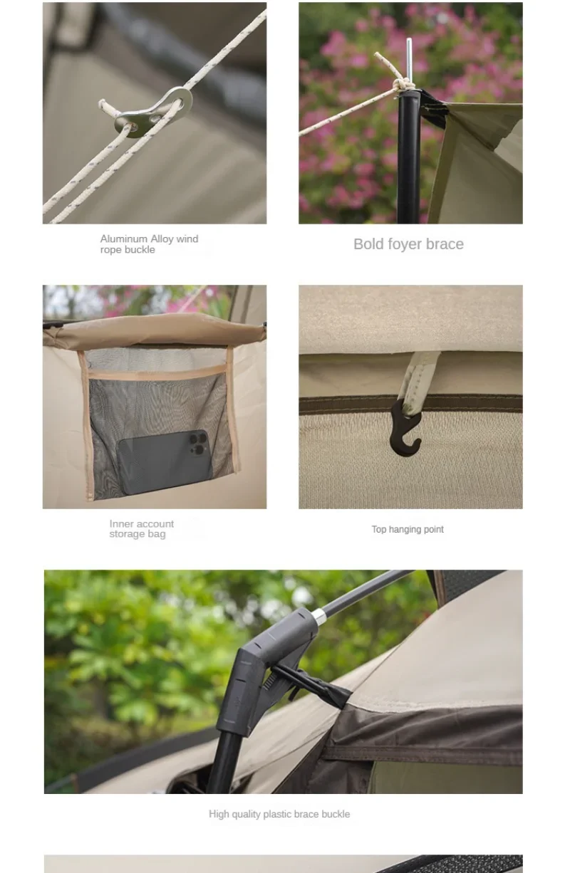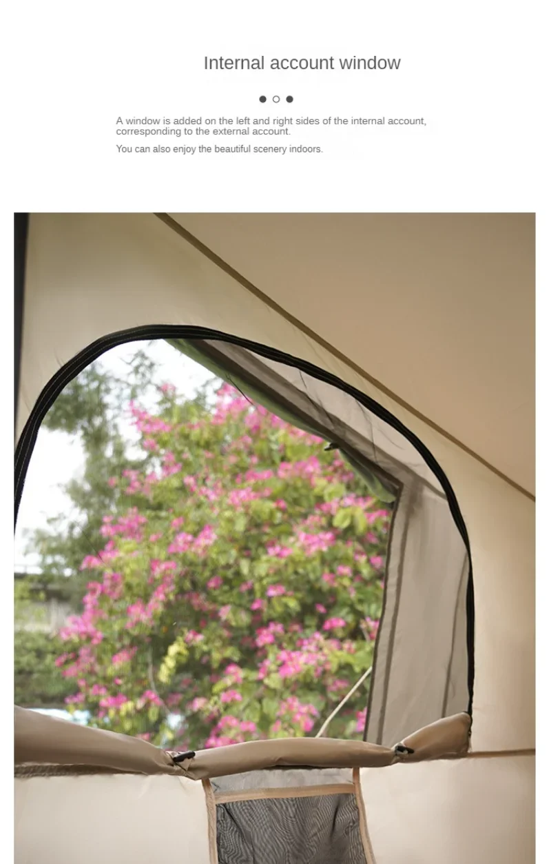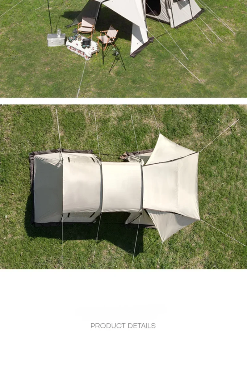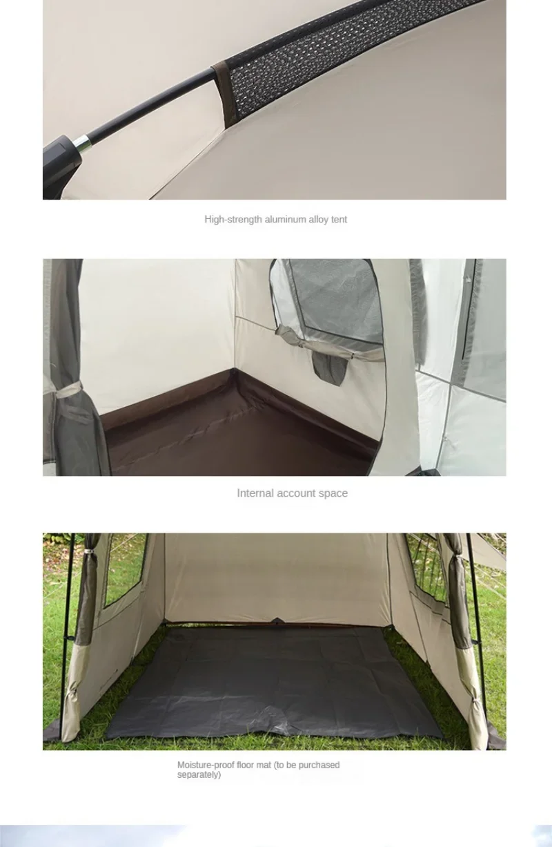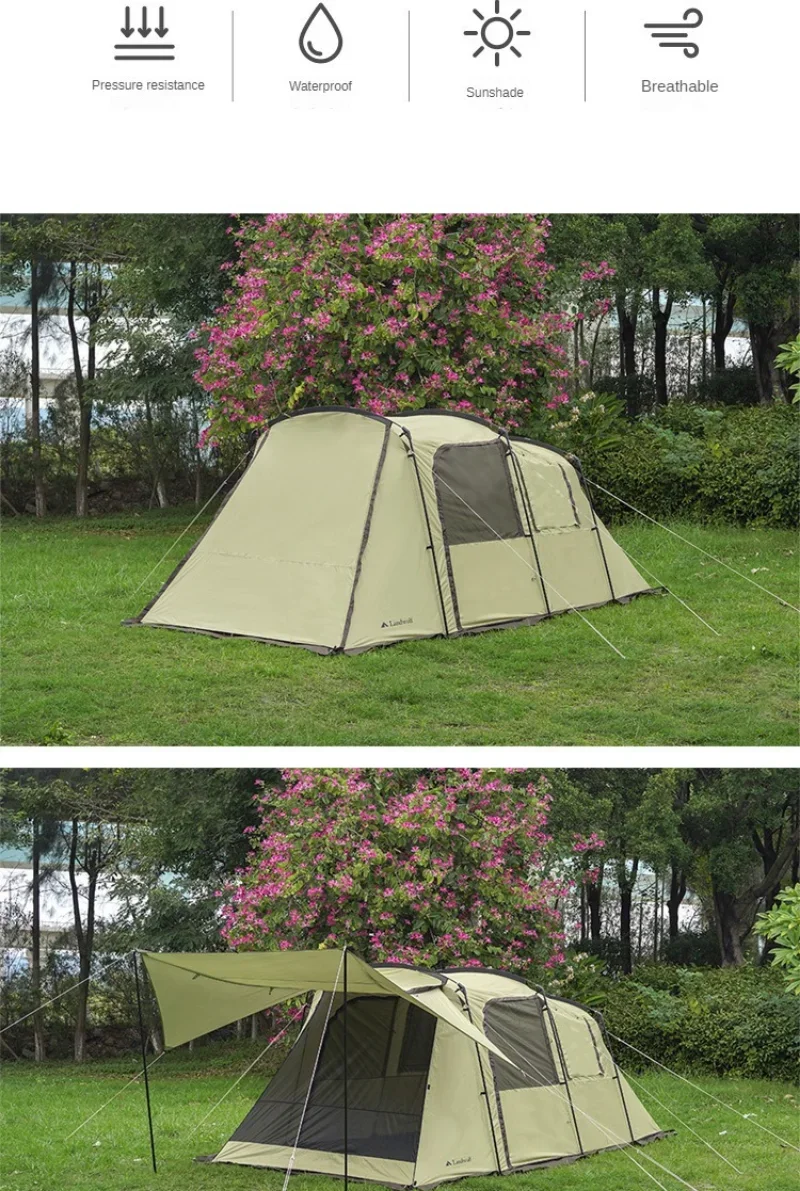 4. Three pole super large tunnel tent, double door and window design, 150D oxford cloth, three door design.