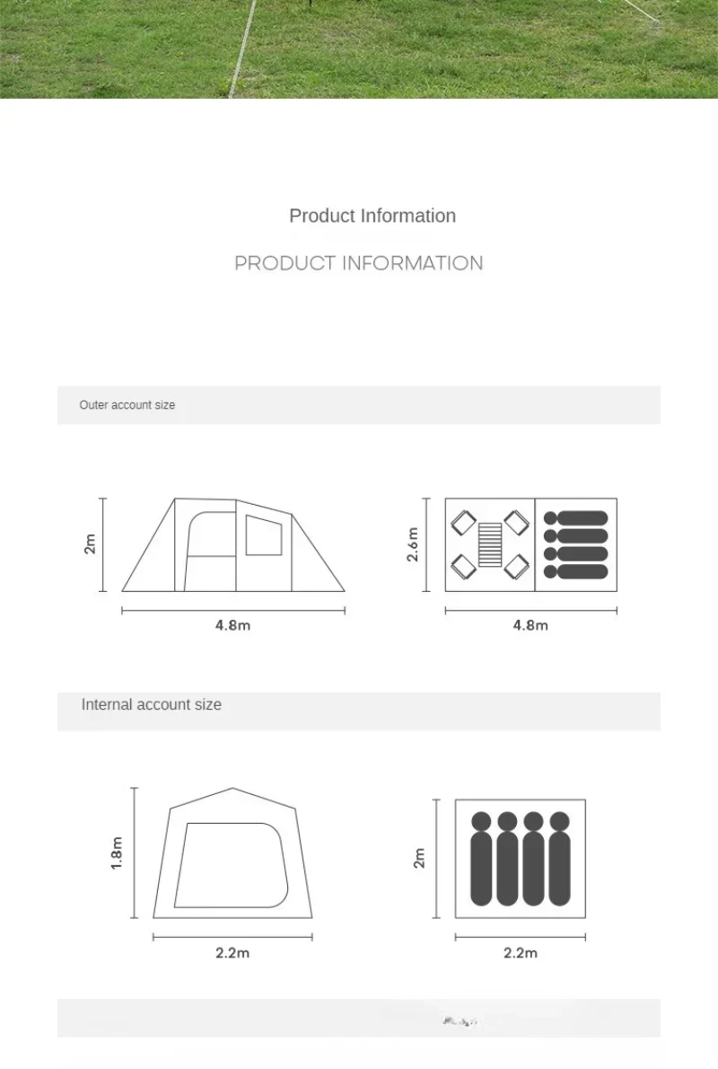 Notice:The ground sheet is suitable for put below the sleeping room.There is no special floor mat for the hall.