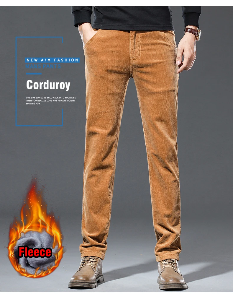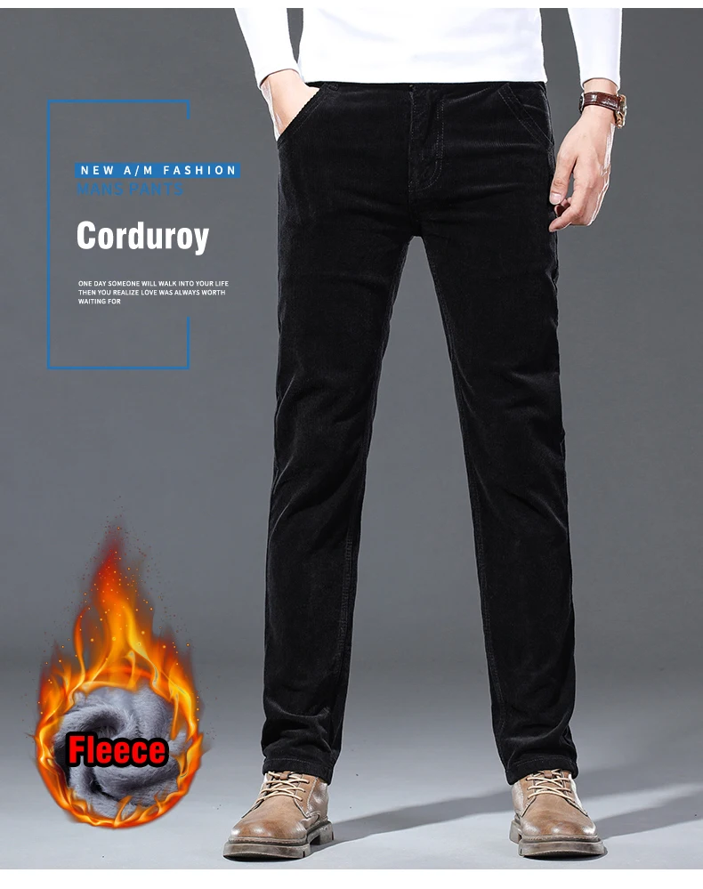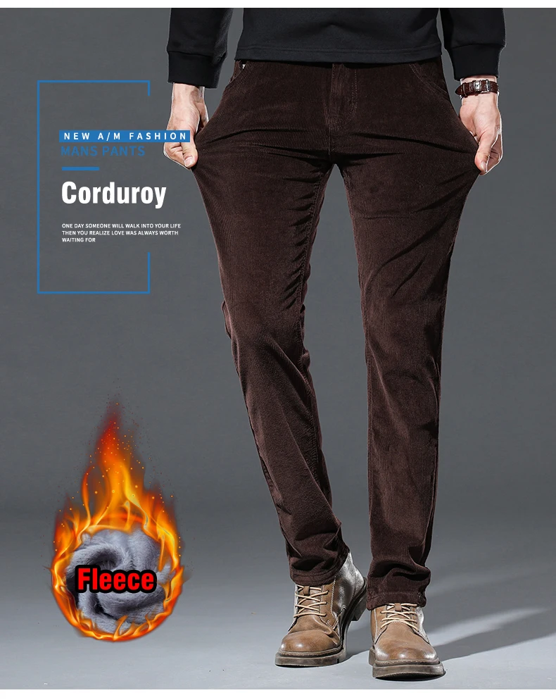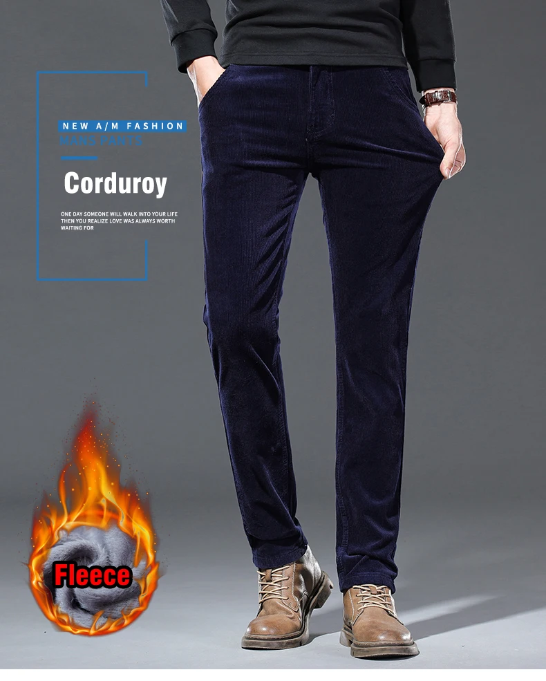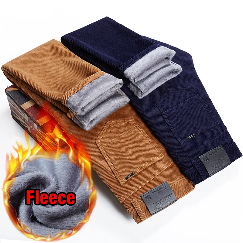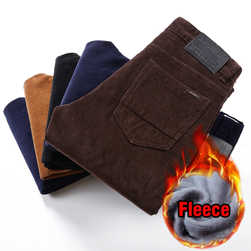4 Colors Men’s Warm Winter Velvet Corduroy Casual Pants Classic Business Fleece Thickened Business Trousers Male Brand Clothing