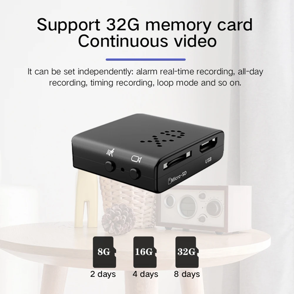 8. Ultra mini camera: Only 1.1×0.4×1.1in (2.9×1.1×2.9cm), very suitable as a home security camera, butler/nanny camera, used to record video without attracting any attention.