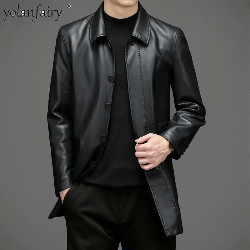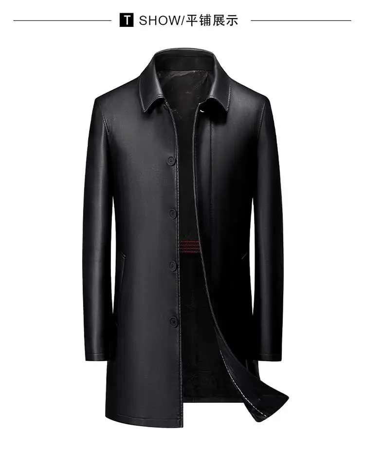 7XL Genuine Leather Jacket Men’s Clothing Midi Long Winter Plush Warm Leather Windbreaker Male Large Size Mens Leather Jacket F