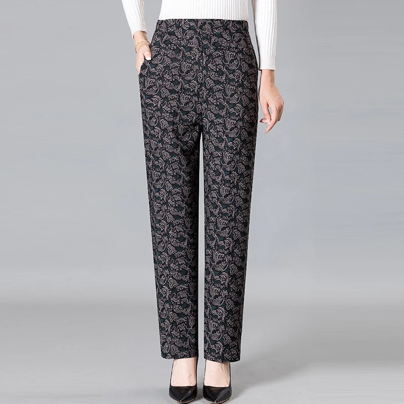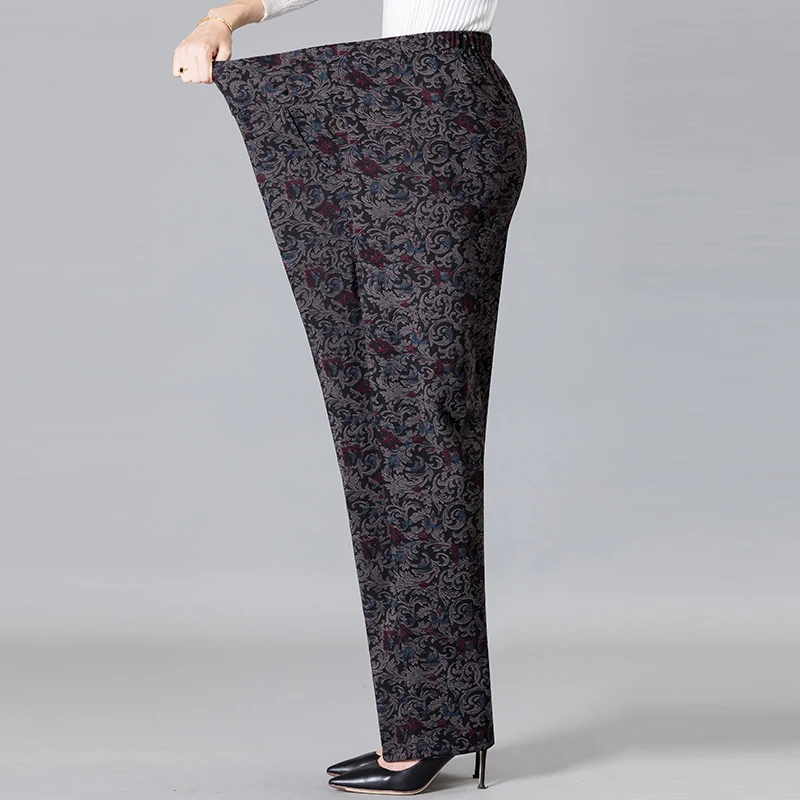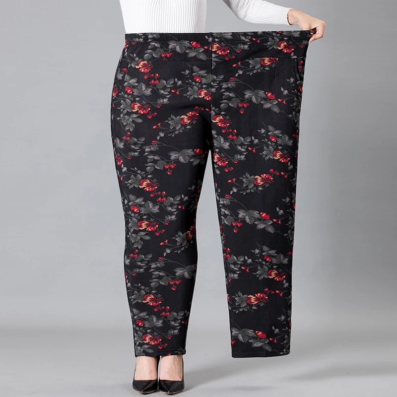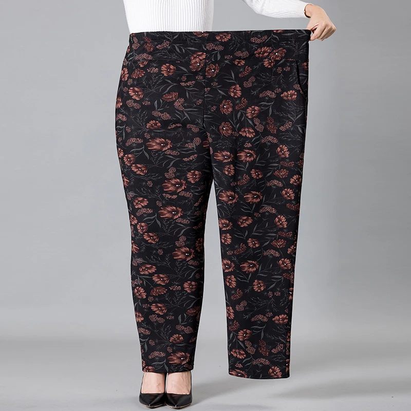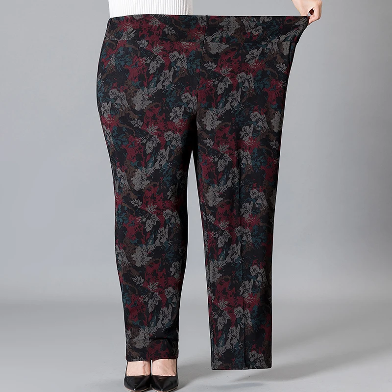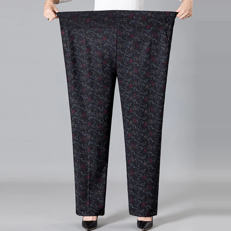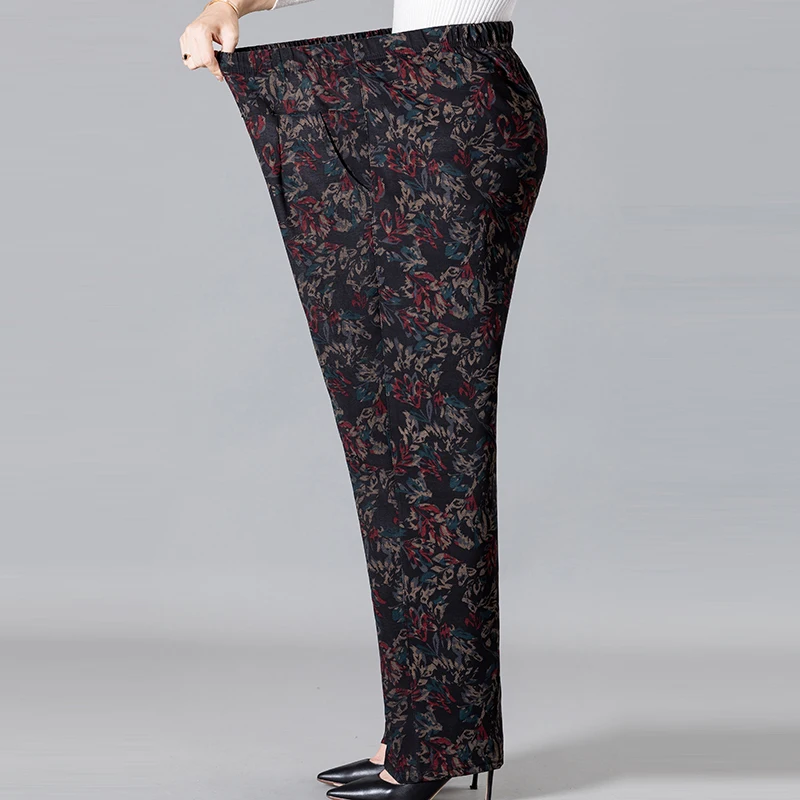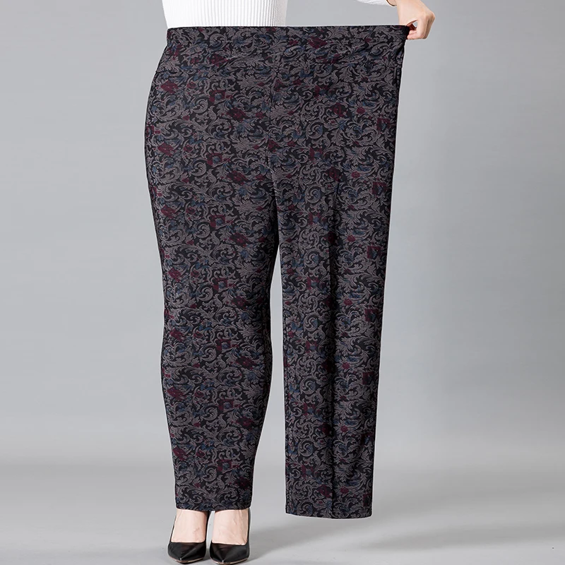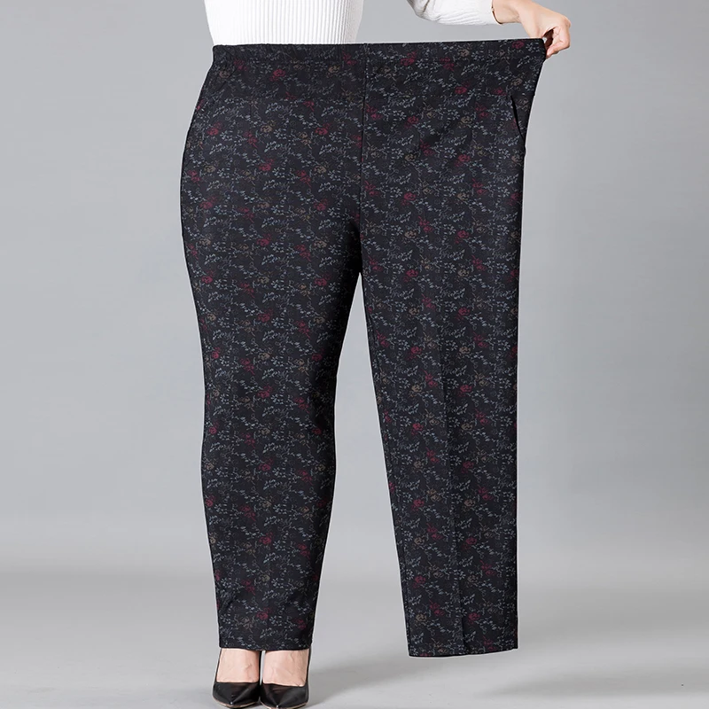8XL 9XL Middle-aged Women Trousers New Print Elasti High Waist Casual Pants Spring and Autumn Straight Pants Oversize Grandma Pa