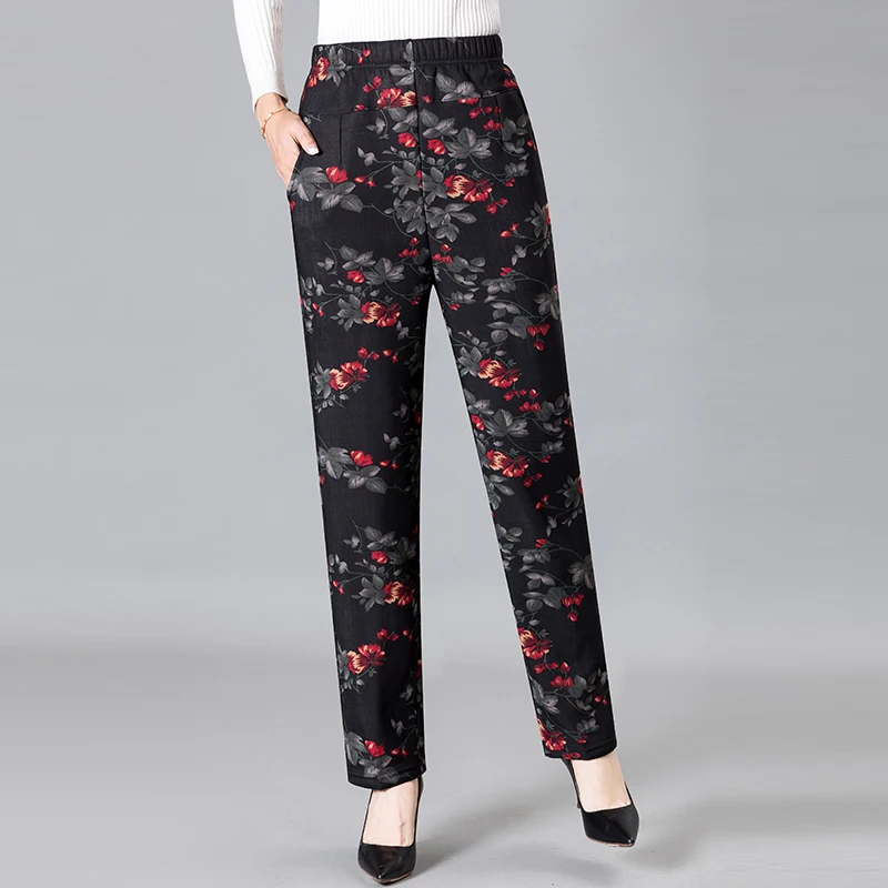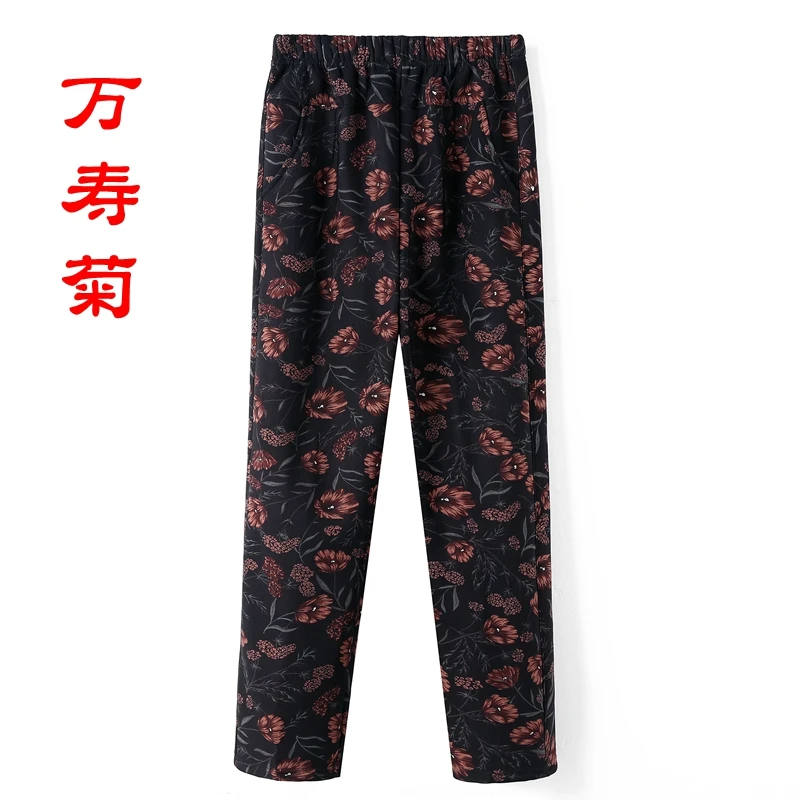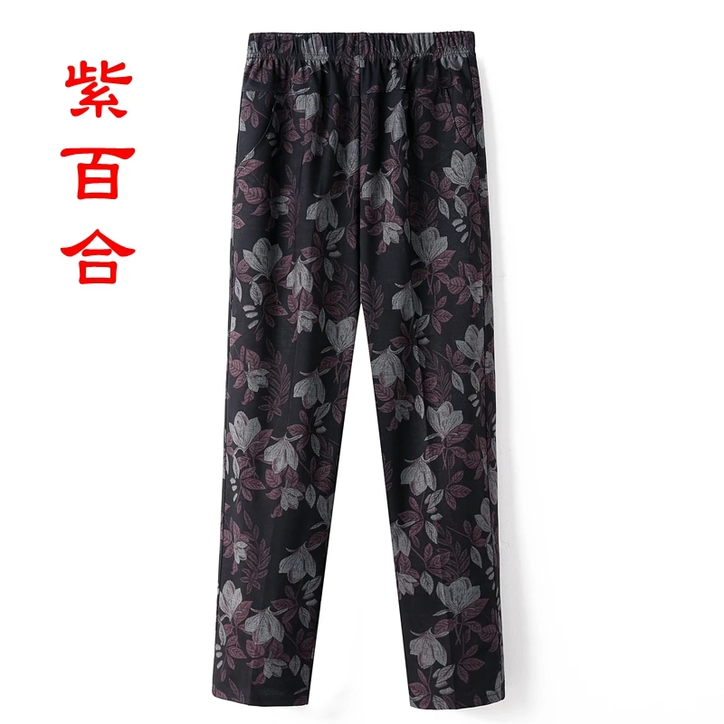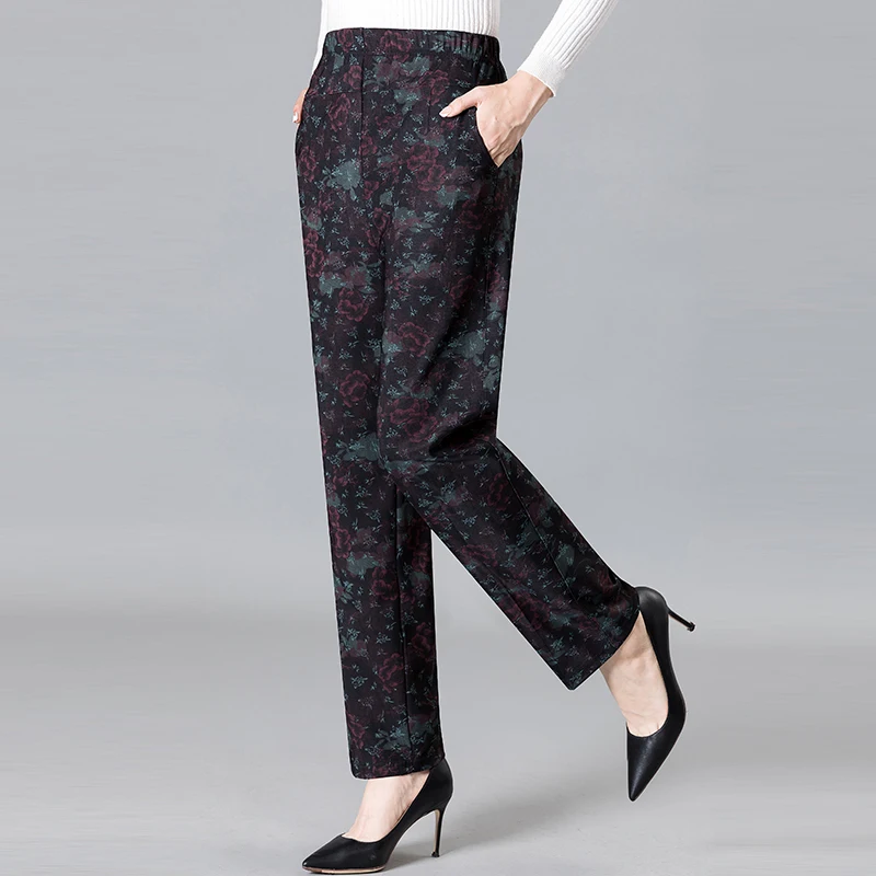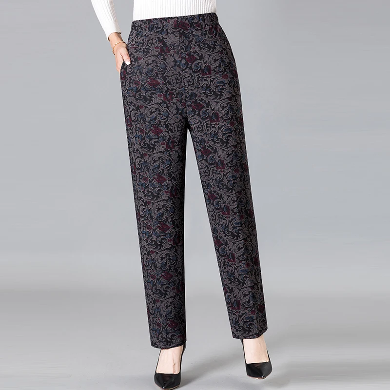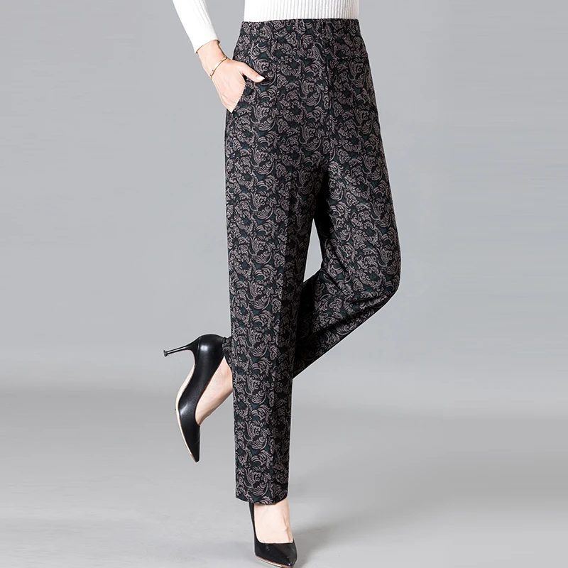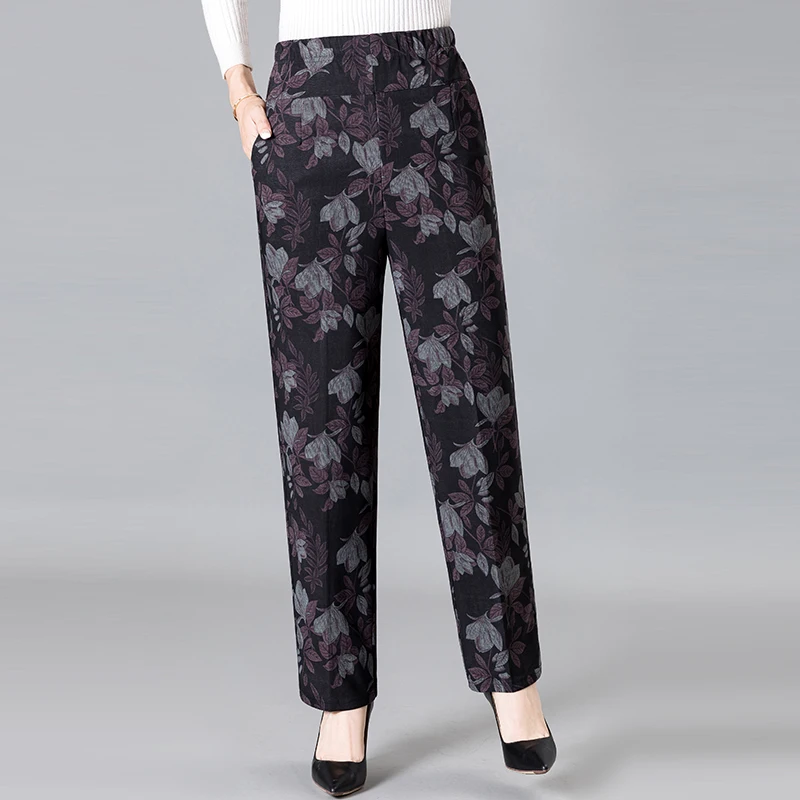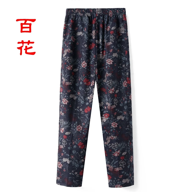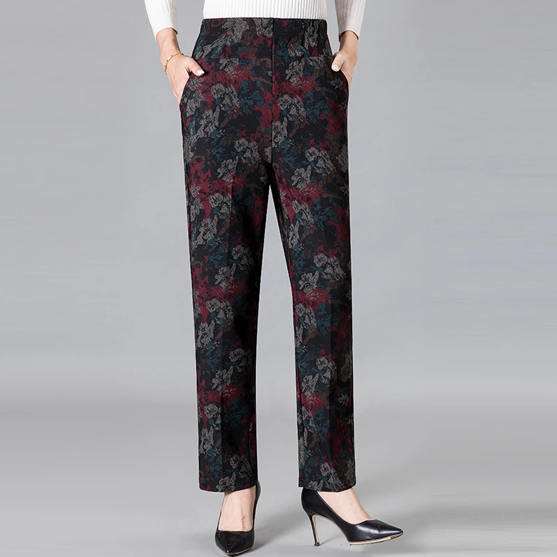 8XL 9XL Middle-aged Women Trousers New Print Elasti High Waist Casual Pants Spring and Autumn Straight Pants Oversize Grandma Pa