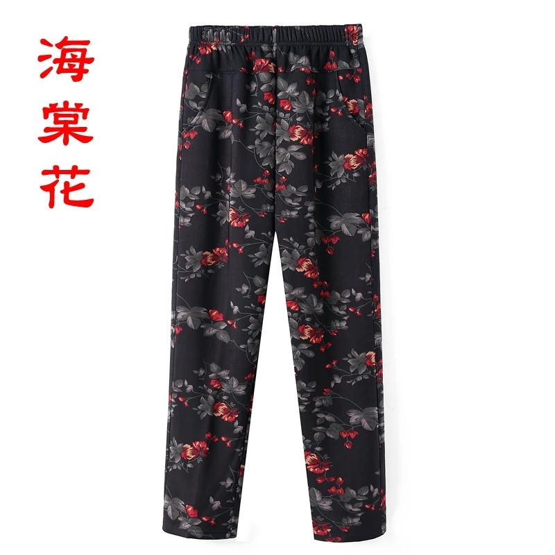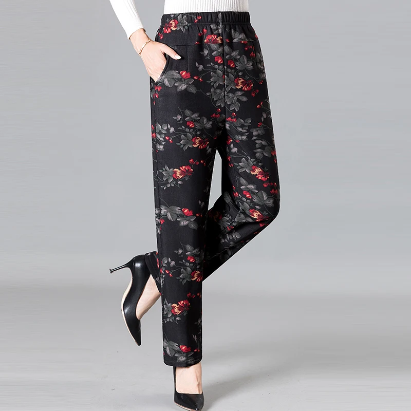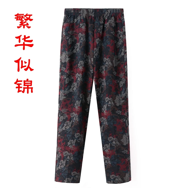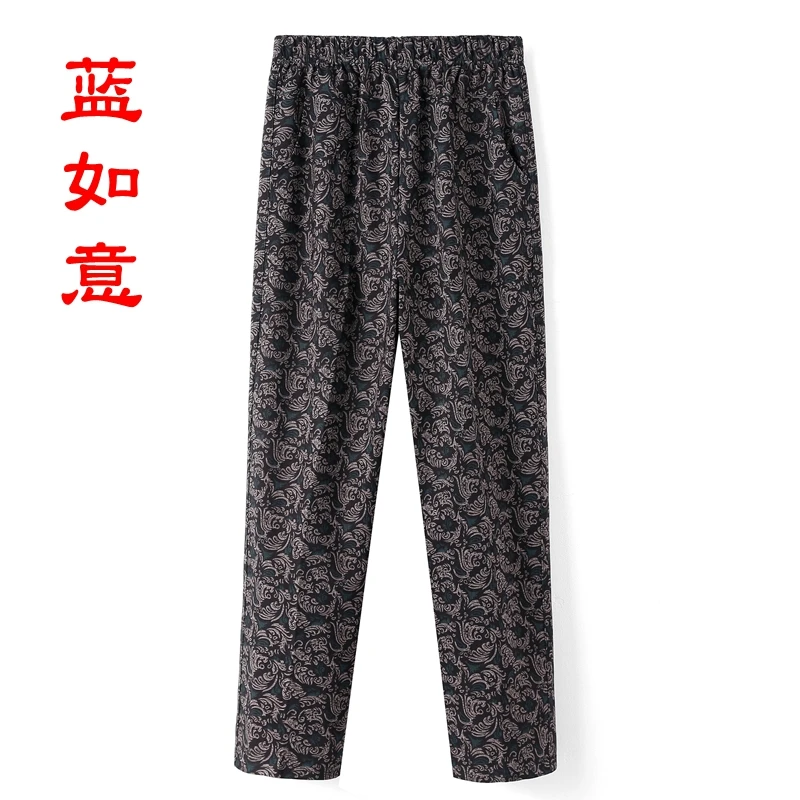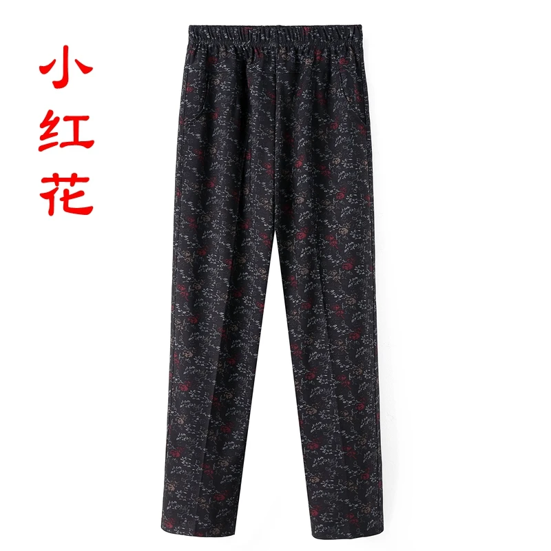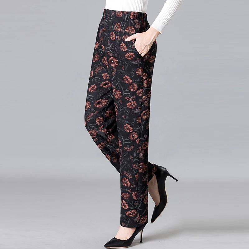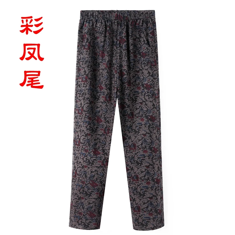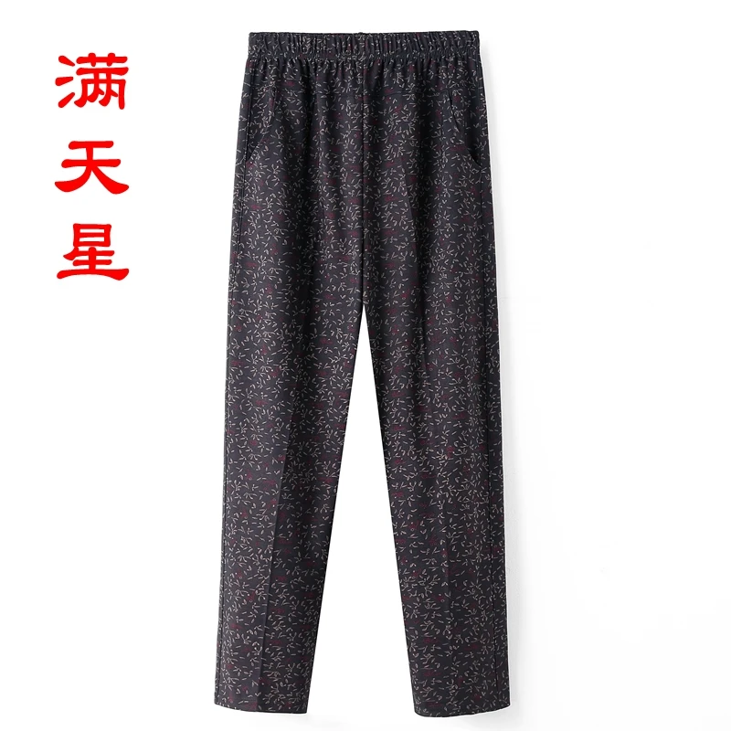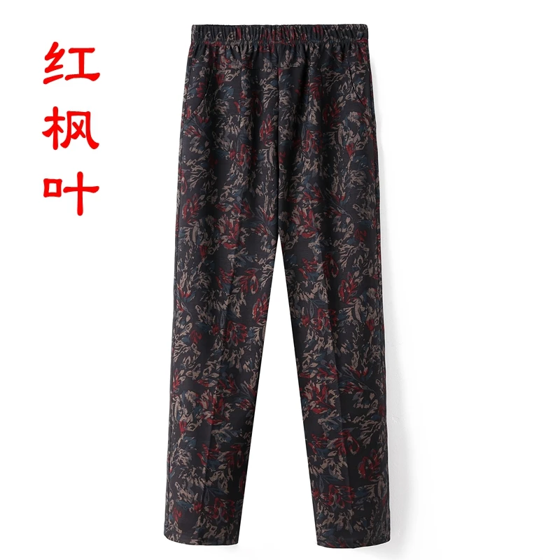 8XL 9XL Middle-aged Women Trousers New Print Elasti High Waist Casual Pants Spring and Autumn Straight Pants Oversize Grandma Pa