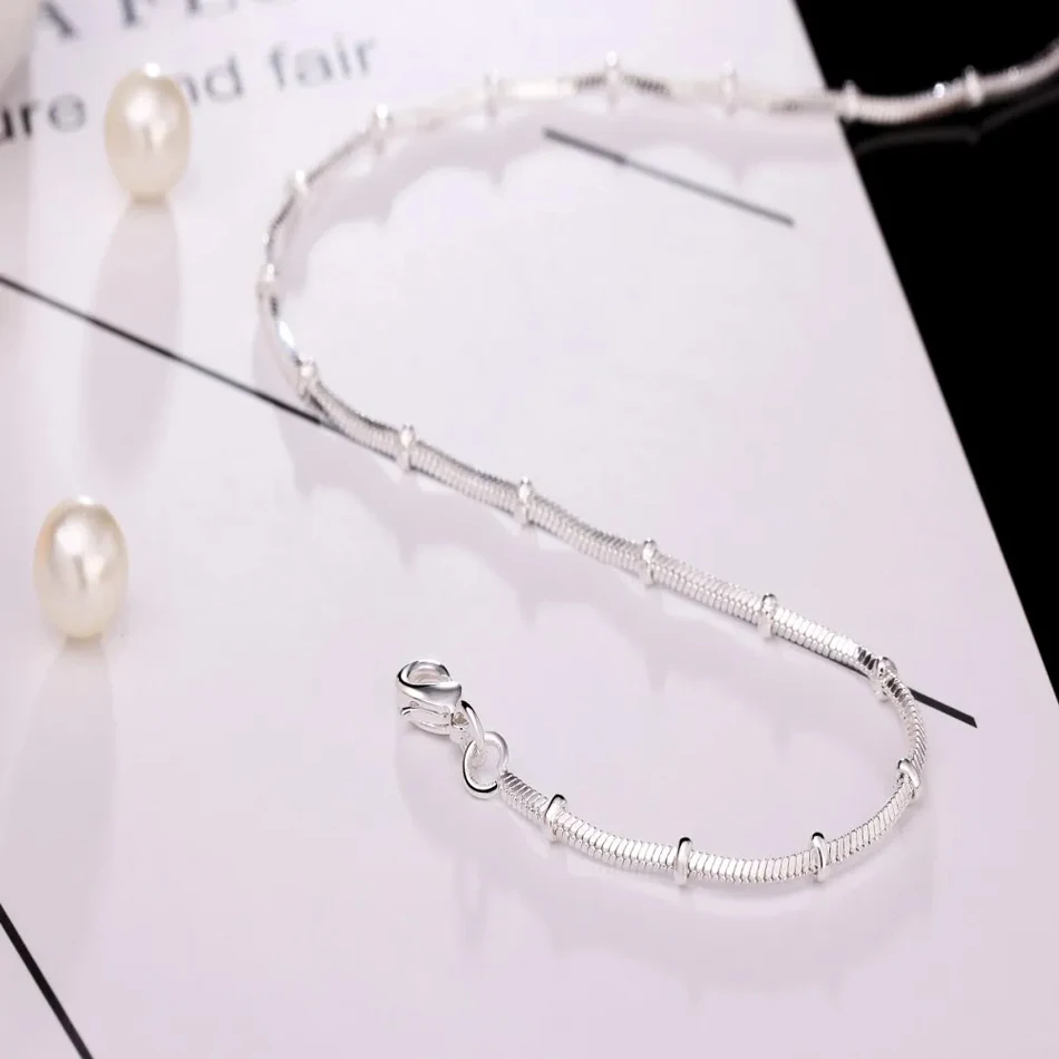 925 Sterling Silver snake chain Beautiful Simple bead Necklace For Women Luxury Fashion Party Wedding Accessories Jewelry Gifts