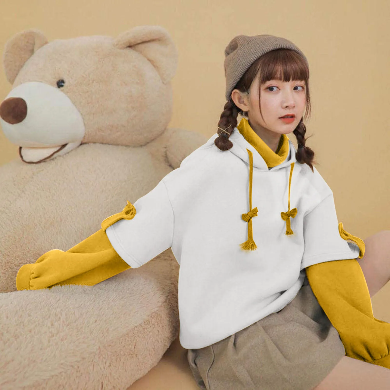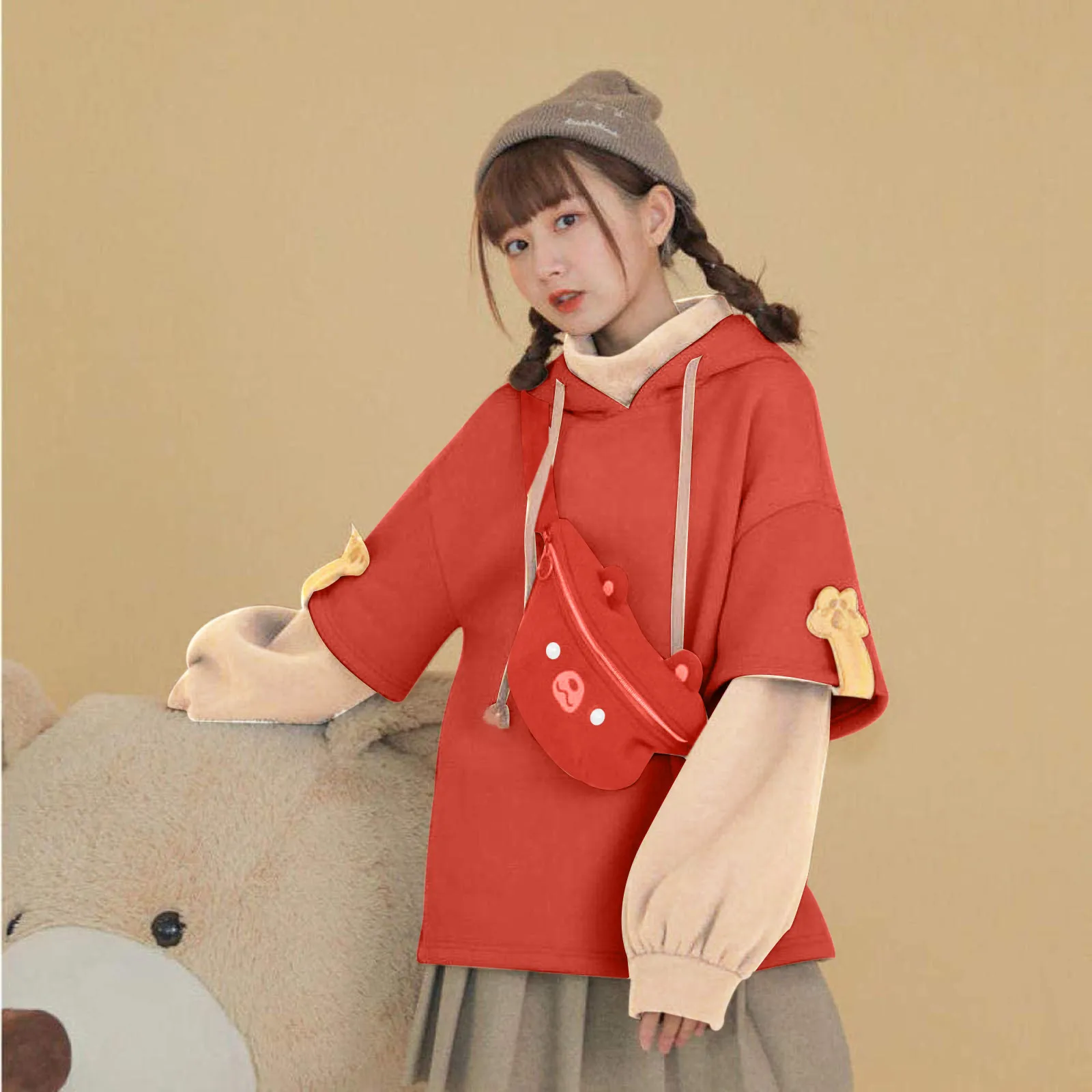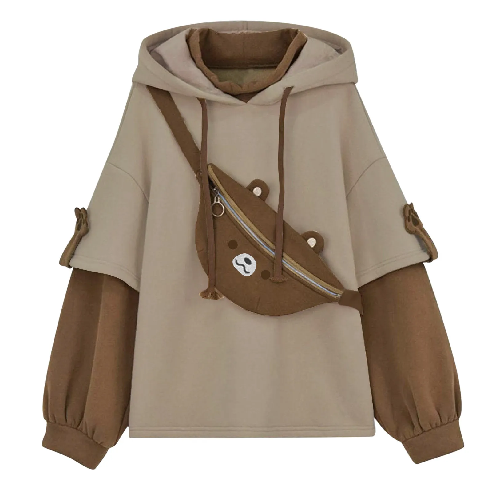Bear Hoodie For Womens Autumn Patchwork Sweatshirts Long Sleeve Pullover With Cute Personality Bag