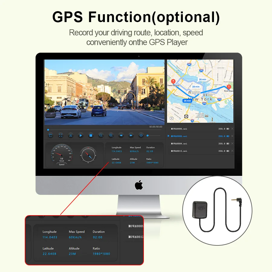 Easily record your driving route, location, and speed on the GPS player.(To use GPS, you need to buy a GPS module)(You can buy from this link://www.aliexpress.com/item/1005004974965248.html) Sony 415 Sensor