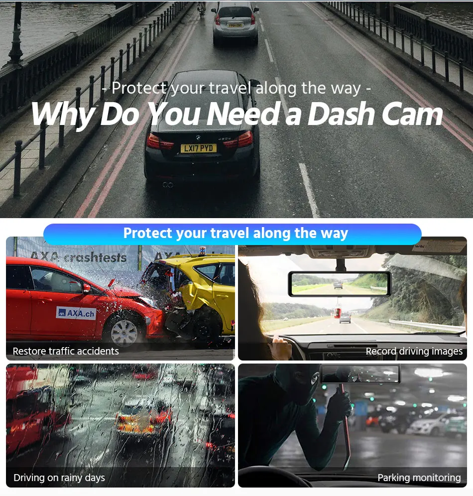 170 Degree Angle front camer with 140 Degree Angle Night vision Rear view Camera (Optional) that allows for simultaneously recording videos from two different angles. Two split view make you have clear view from front and back-up camera. Real-time Display Reverse Parking view