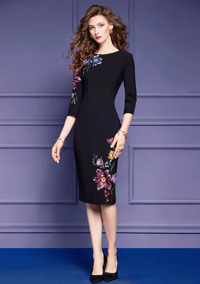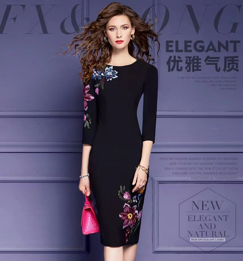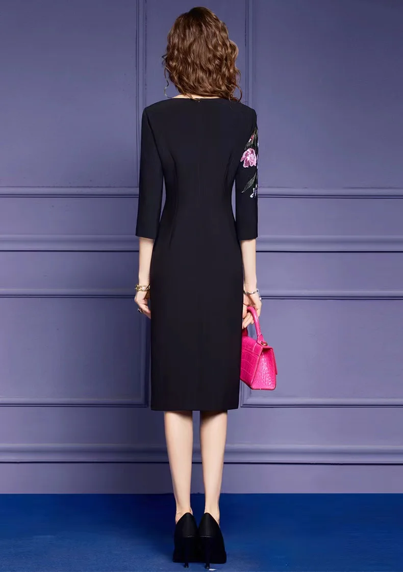 AIMEILI Women New Elegant Embroidery Dress High Quality Wedding Cocktail Party A-Line Designer Office Lady Business Vestidos