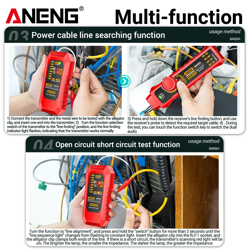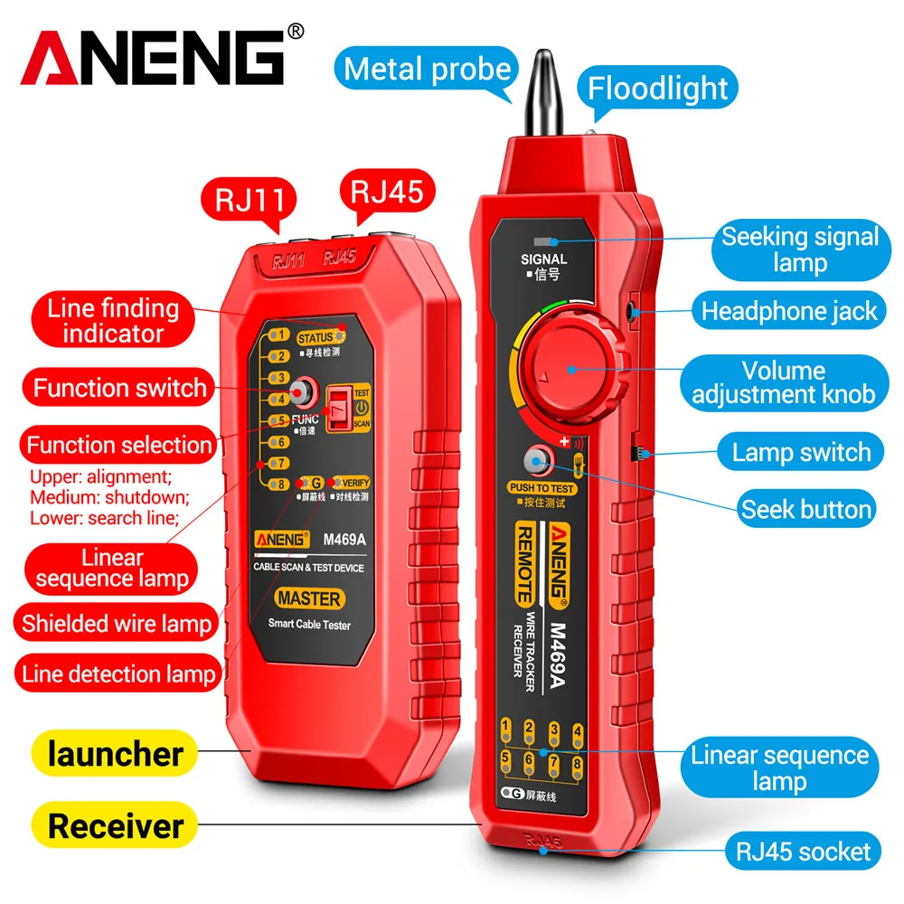 ANENG M469D RJ45 RJ11 Network Cable Tester LAN Cable Networking Wire Telephone Line Detector Tracker Test Tool