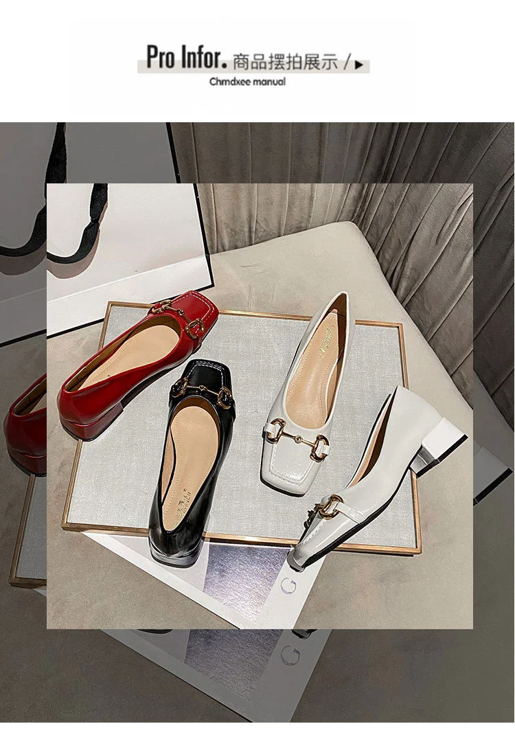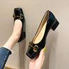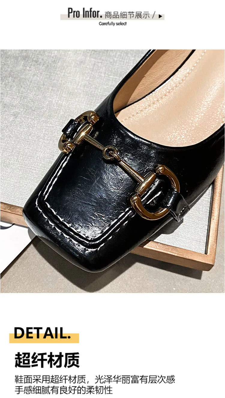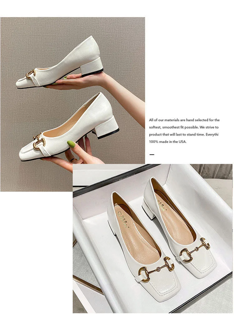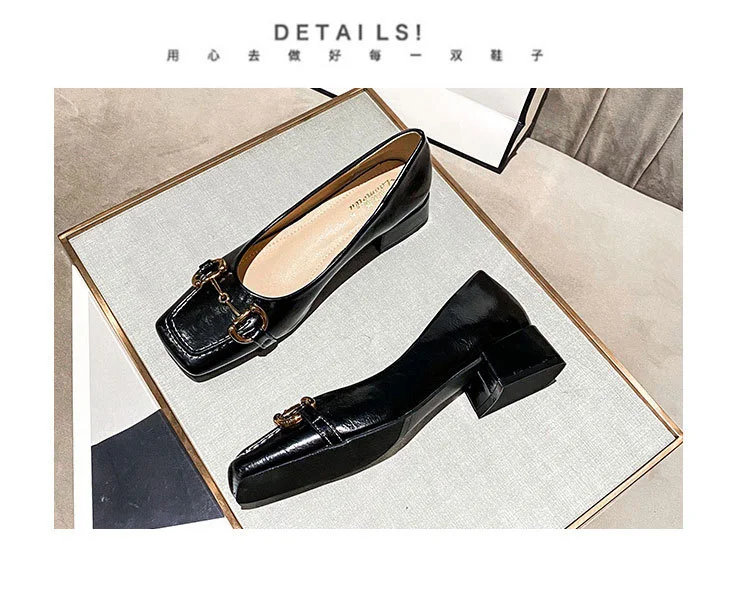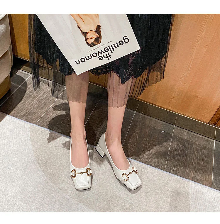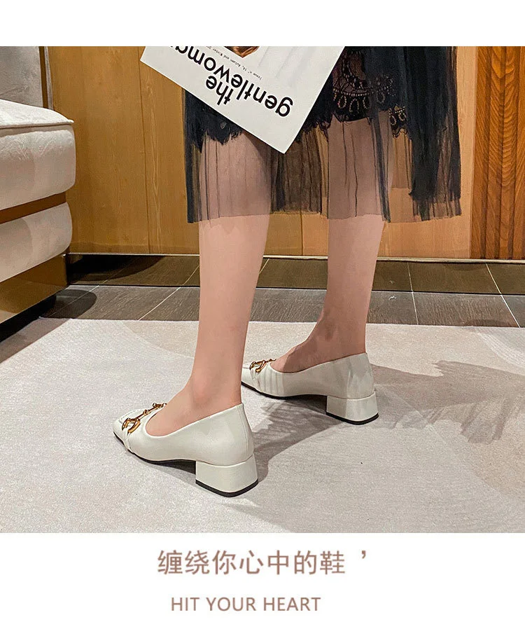 2022 New Style Single Shoes Fashion Thick Heel Square Toe Metal Shallow Mouth Mary Jane Women’s Shoes Large Size Women’s Shoes