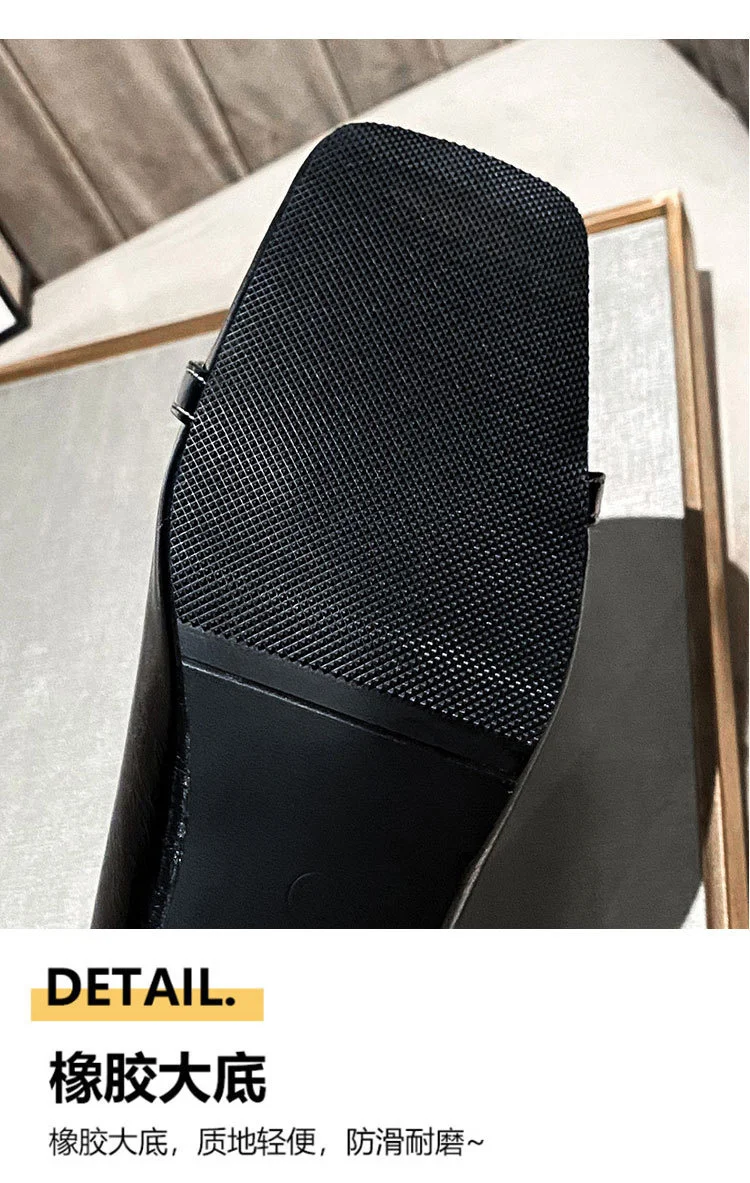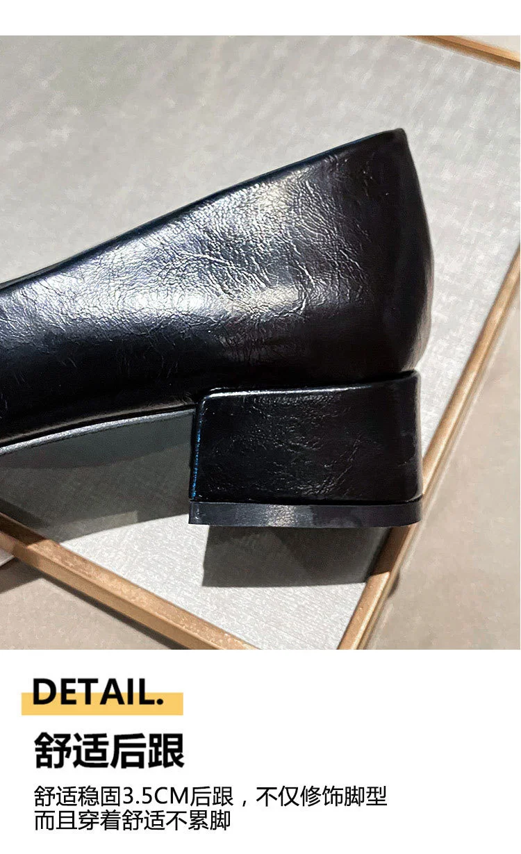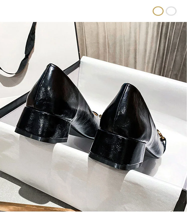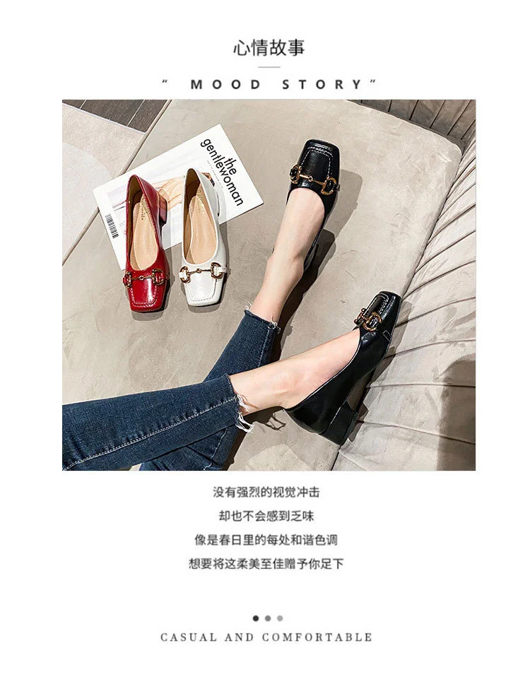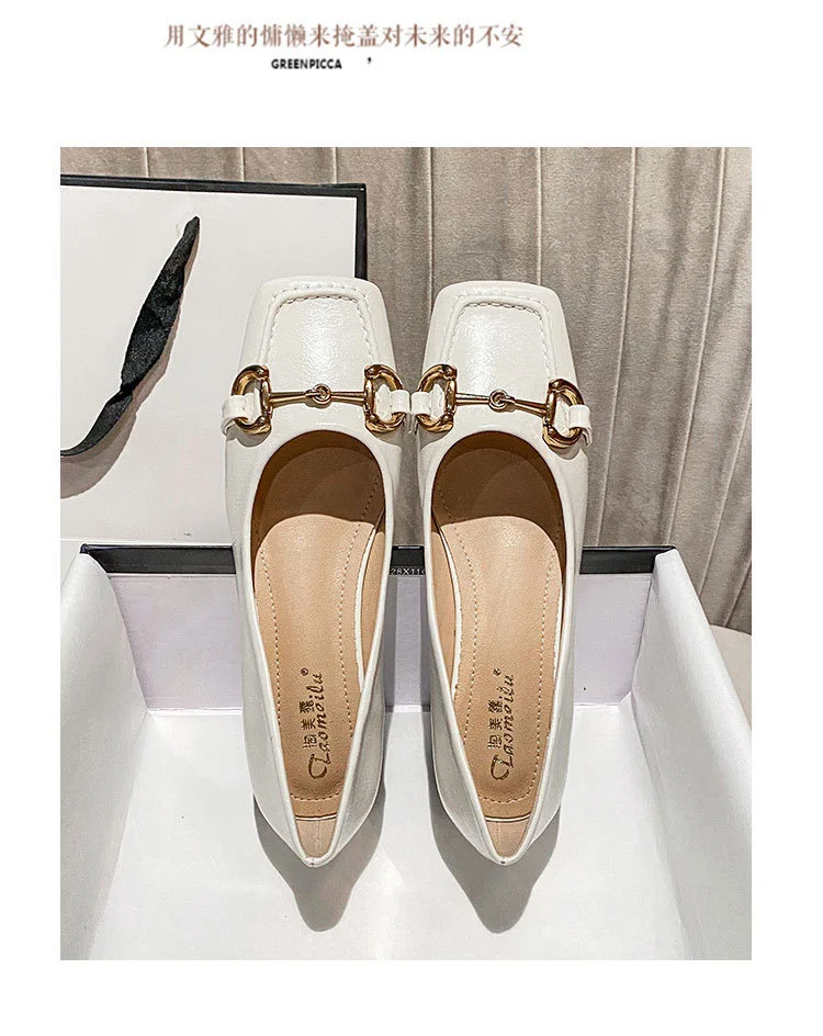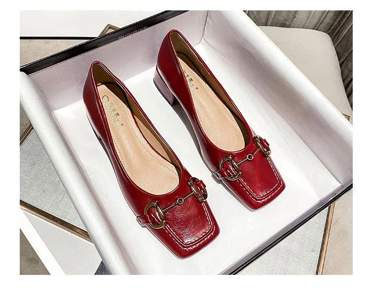 2022 New Style Single Shoes Fashion Thick Heel Square Toe Metal Shallow Mouth Mary Jane Women’s Shoes Large Size Women’s Shoes