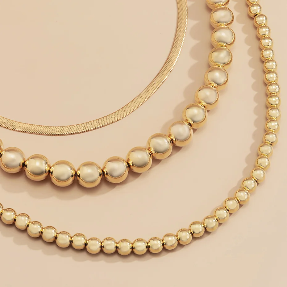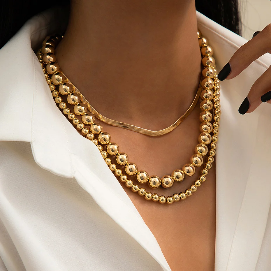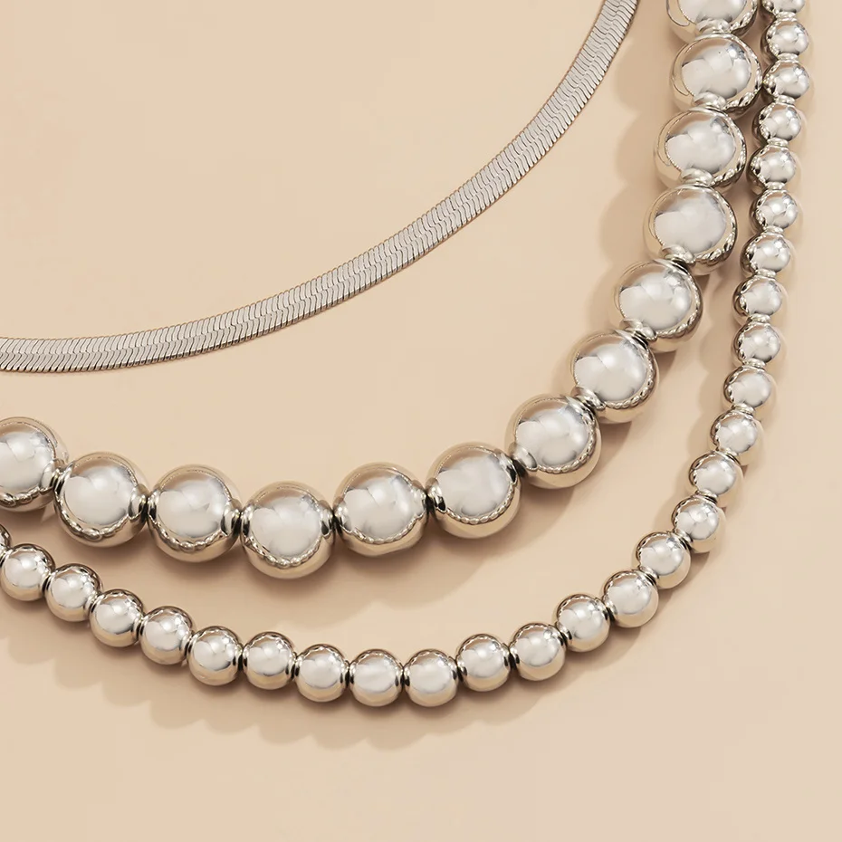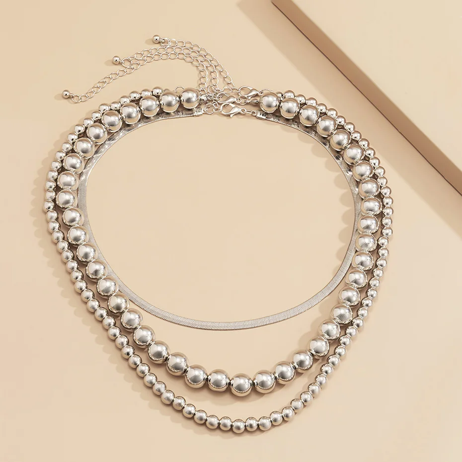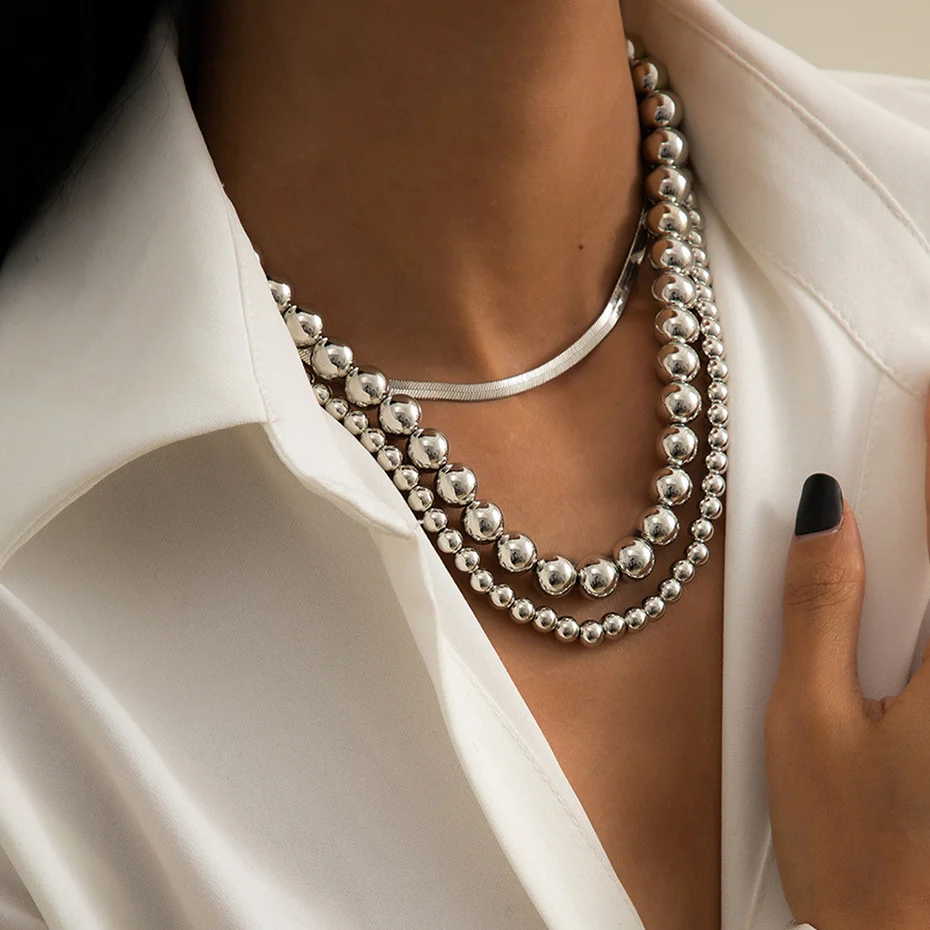 3Pcs/Set Hip Hop Ball Beads Chain Necklace Collar Gothic Punk Snake Chain Choker Necklaces Women Men Neck Jewelry 2021.