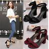 Pink Black Gladiator Sandals Summer Office Women Sandals Women Open Toe Chunky High Heels Party Dress Sandals