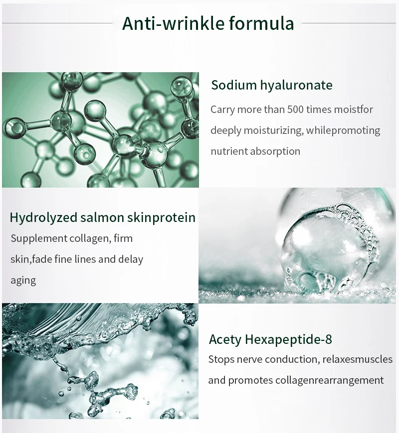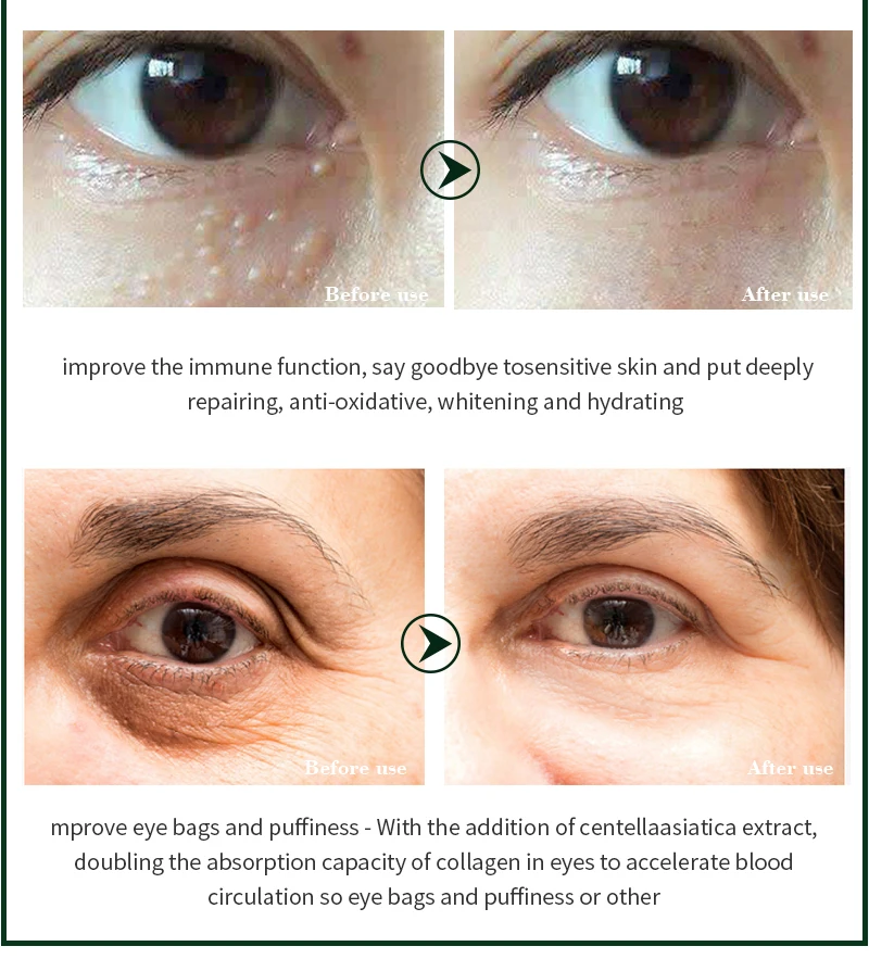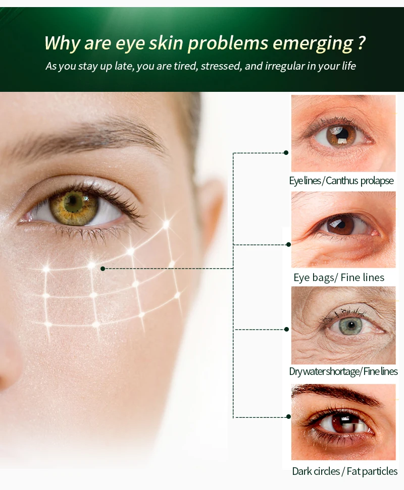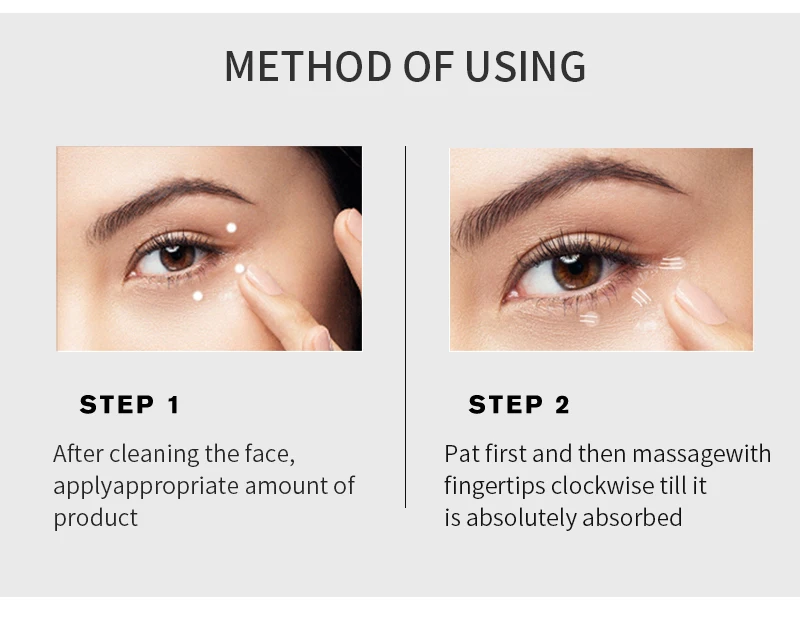 1. After cleaning the skin, to push the wrinkles of the eyes, take appropriate amount of eye cream against the direction of the small wrinkle applied throughout the eye.