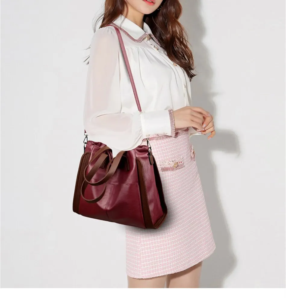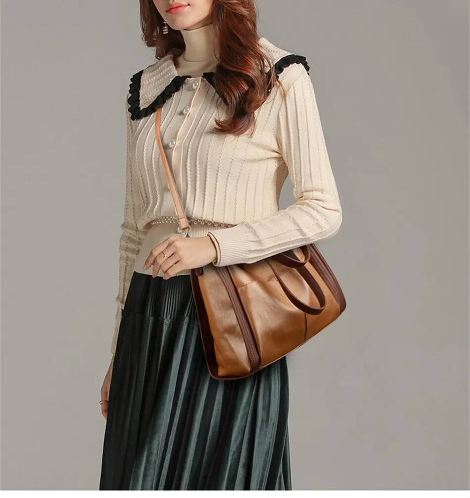 Fashion Women Handle Bag Vintage PU Leather Crossbody Tote Bag Female Luxury Handbag Large Capacity Shoulder Bag for Women