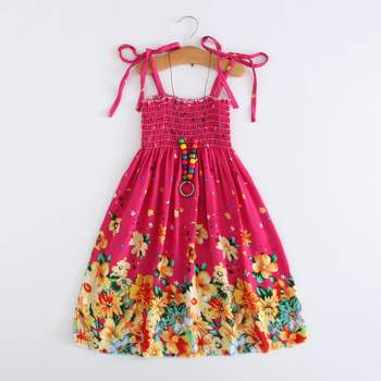 Summer Girls Floral Dress Sling Ruffles Bohemian Beach Princess Dresses for Girl Clothing 2 6 8 12 Years With Necklace Gift
