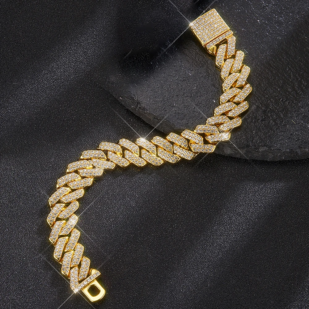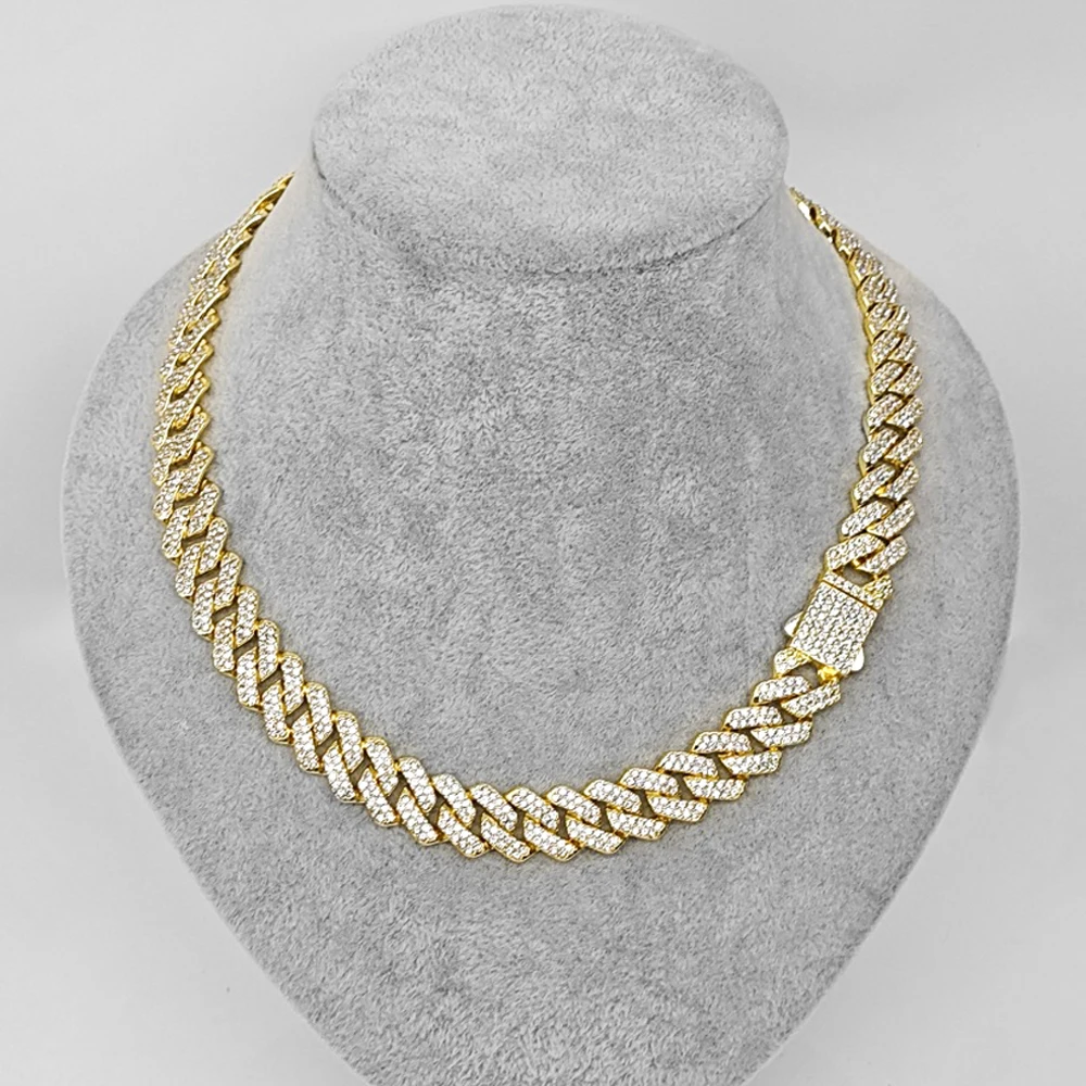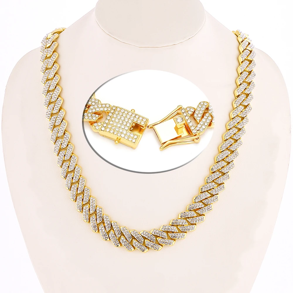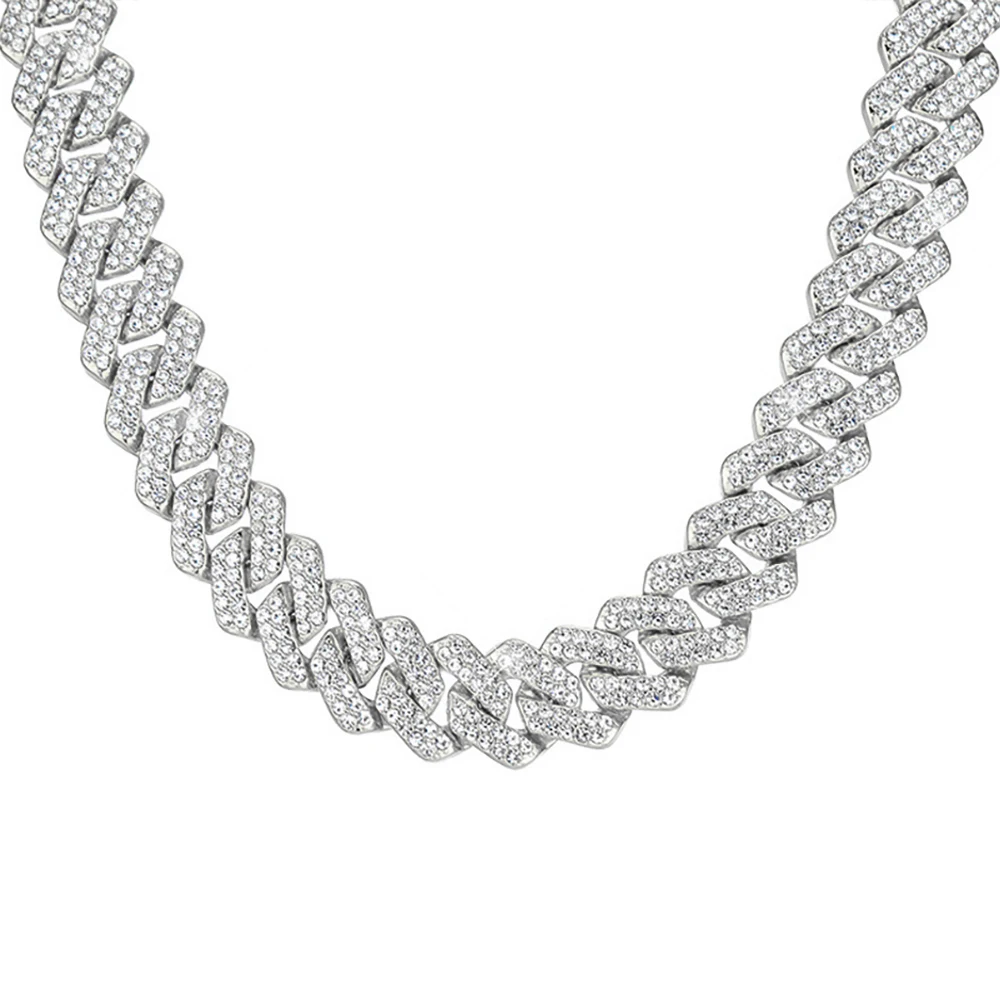Hip Hop Shiny 15MM Cuban Link Chain Necklace Women Men Silver Color Rhinestone Iced Out Cuban Chain Punk Jewelry Necklace Gift