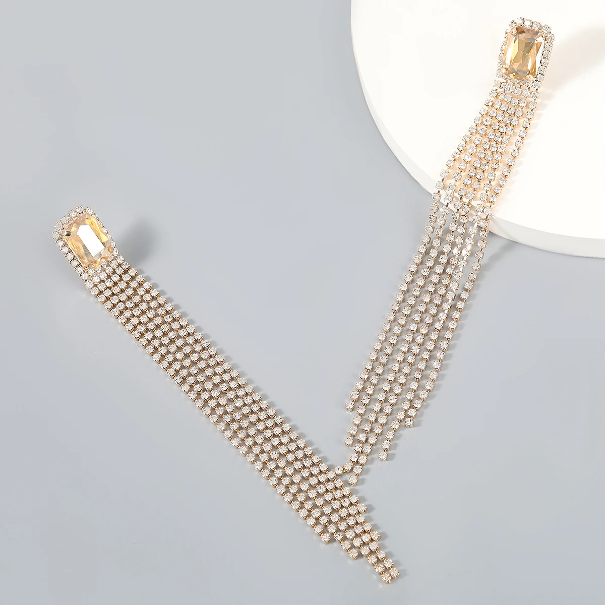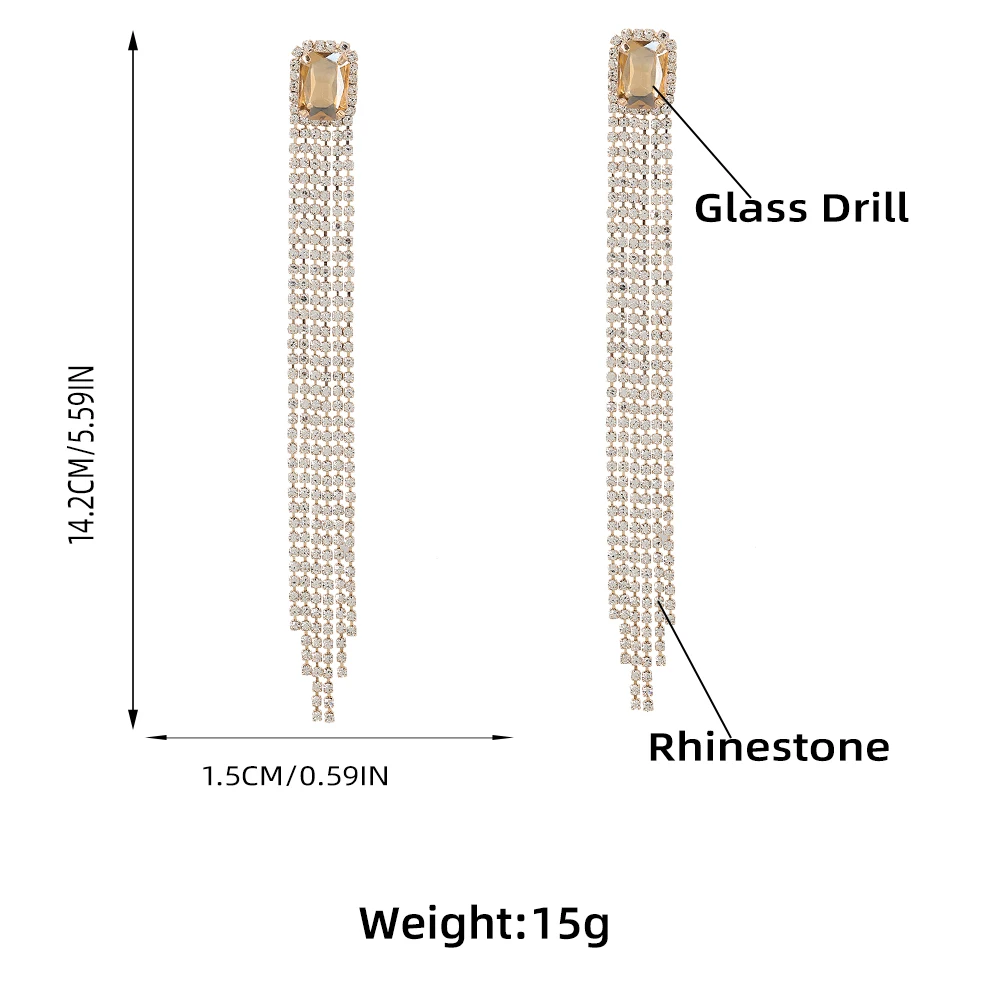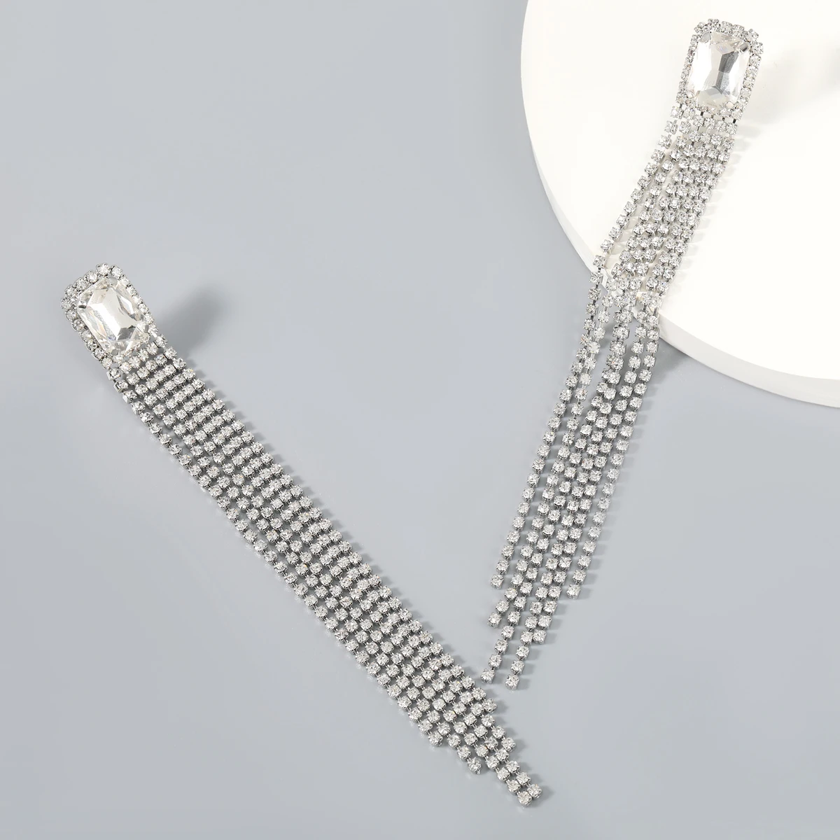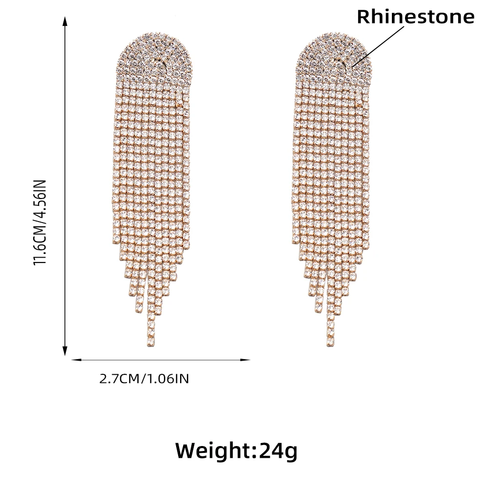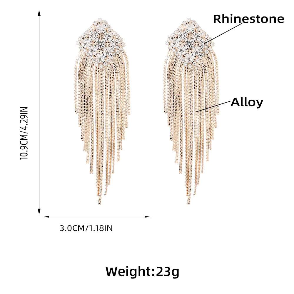 JIJIAWENHUA New Trend Sparkling Rhinestone Tassel Claw Chain Ladies Earrings Dinner Party Wedding Fashion Jewelry Accessories