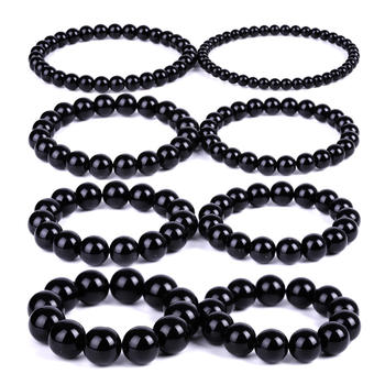 Black Obsidian Bracelet Buddhist Prayer Blessing Blackstone Healing Stone Ball Beads Jewelry Valentine’s Present