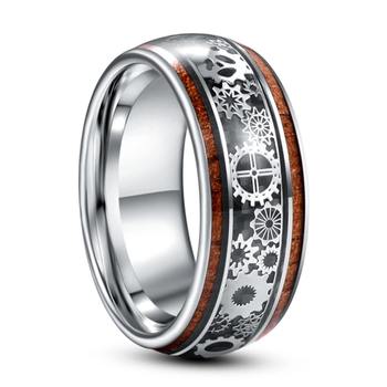 Fashion Steampunk Gear Wheel Stainless Steel Rings Inlay Koa Wood Rings For Men High Polished Hiphop Punk Rock Biker Jewelry