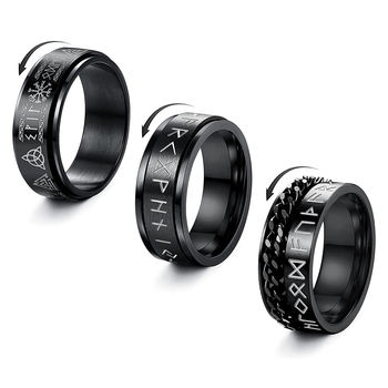 Vintage Stainless Steel Odin Norse Viking Rune Rings For Men Women Cool Spinner Fidgets Rings Retro Nordic Amulet Jewelry Gifts