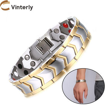Vinterly Energy Bracelets Men Magnetic Arrow Gold Color Chain Link 15mm Wide Stainless Steel Germanium High Magnet Male Jewelry