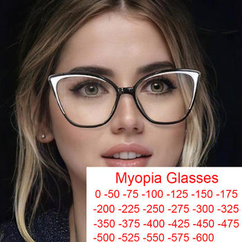 Vintage Cateye White Black Myopia Glasses Women Blue Light Protection Computer Eyeglasses Student Shortsight Eyewear -1.75 -3 -6