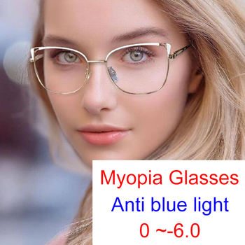 Feminine Optical Myopia Glasses Luxury Brand Cat Eye Blue Light Blocking Glasses Fashion Women’s Eyeglasses Diopters Minus 0 ~-6