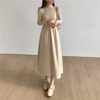Knitted Sweater Dresses for Women Party Clothing Half Turtleneck Autumn Winter 2022 Midi Dress A-Line Vintage Casual Loose Warm