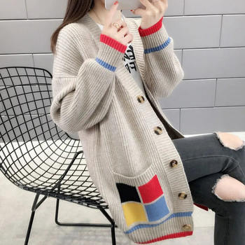 Women Mid Length Knitted Cardigan Autumn/Winter New Coat Flip Collar Loose All-match Lady Tops Female Solid Color Casual Sweater