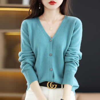 Spring Autumn Winter Women’s Chic Wool Knit Cardigan Loose V-Neck Long Sleeves Solid Color Soft Fashion Casual Sweater Jacket