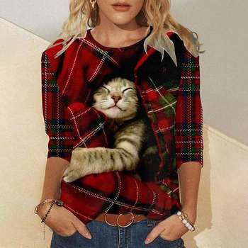 T-shirt women’s 3D cute cat print fashionable summer minimalist polyester cycling versatile novel soft top short sleeved