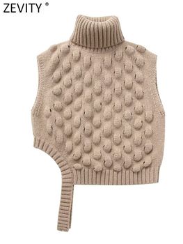 Zevity 2023 Women Fashion Sleeveless High Collar Texture Knitting Vest Sweater Female Irregular Crop Pullovers Coat Tops SW5527