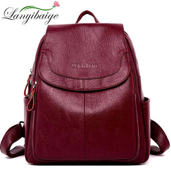 LANYIBAIGE Women Leather Backpacks Female Shoulder Bag Ladies Bagpack Vintage School Bags For Girls Travel Back Pack Sac A Dos