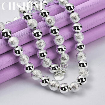 CHSHINE 925 Sterling Silver 8mm Matte Smooth Beaded Necklace For Women’s Lady Wedding Engagements Fashion Charm Jewelry