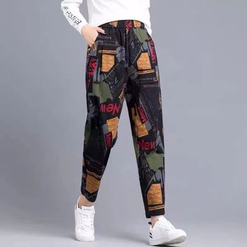 Women’s Pants Spring Autumn 2022 Stretch High Waist Loose Carrot Pants Printed Casual Harem Pants Lady Trousers4XL 713