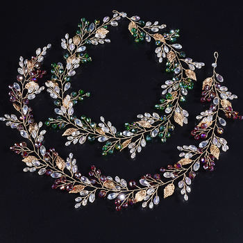 Bohe Green Vine Bridal Headband Crystal Headdress Bridal Hair Ornaments Wedding Hair Accessories Bride Headband For Women