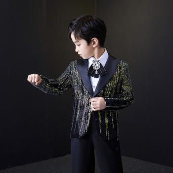 Children’s Formal Tuxedo Suit Boys Performance Piano Catwalk Competition Host Dress Costume Kids Sequins Fashion Tops