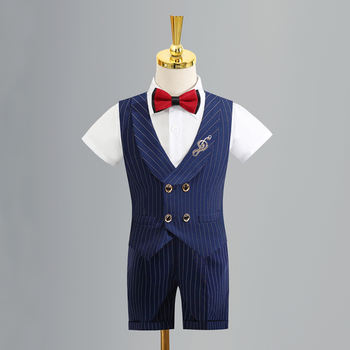 Children’s Summer Vest Suits Set Korean Boys Waistcost Shorts Bowtie Flower Costumes Baby Kids Wedding Birthday Party Dress