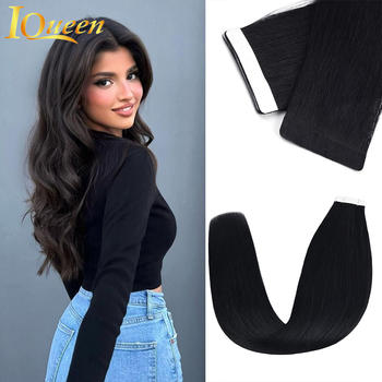 Tape in Hair Extensions Human Hair Natural Black Tape Ins for Women Human Hair Extensions Tape in Straight Seamless Skin