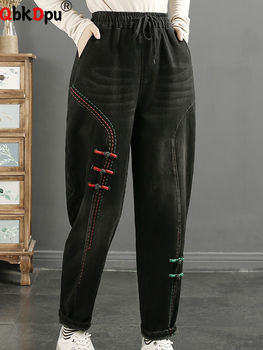 High Waist Harem Embroidered Denim Pants Vintage Elastic Baggy Oversized 4xl Women Trousers Korean Lace Up Streetwear New Jeans
