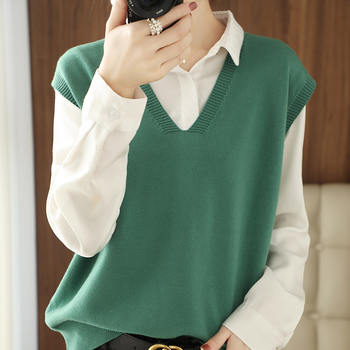 New Women’s Vest Worsted Cashmere Vest Spring And Autumn Loose Knit Sleeveless Pullover Women’s Vest Waistcoat