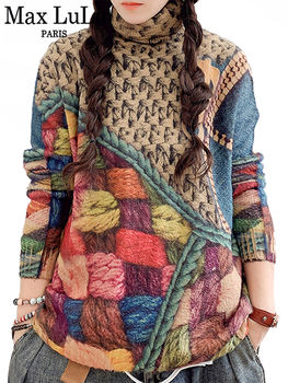 Max LuLu New Fashion Womens Vintage Print Jumpers 2021 Winter European Style Loose Turtleneck Sweaters Casual Elegant Pullovers