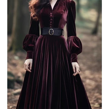 Autumn Winter Women’s New Chinese Fashion Chinese Formal Occasion Dress Long Dress Style Super Beautiful Purple Red Velvet Dress