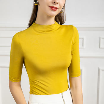 S-3XL Modal Tshirt Top Women Half Sleeve Turtleneck T-shirts Tees Girl Solid Slim Basic Undershirt T shirt